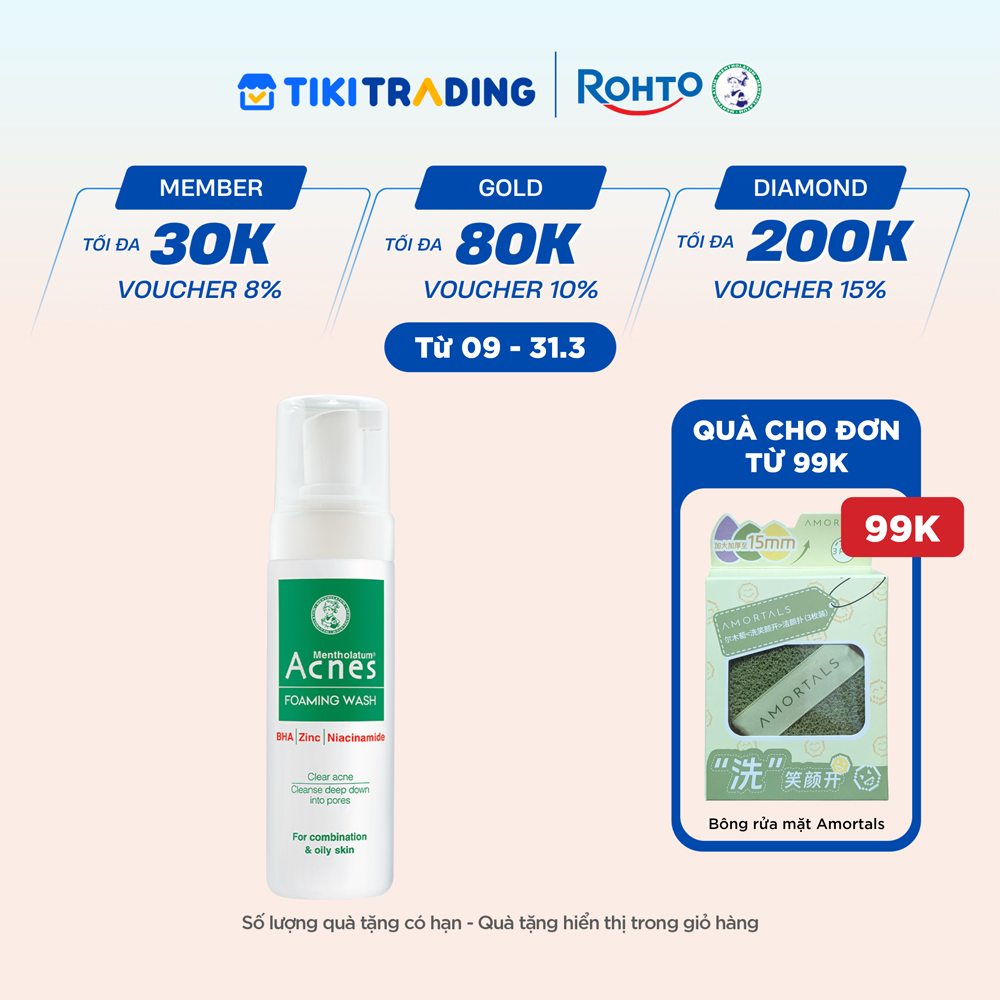 Sữa rửa mặt tạo bọt Acnes Foaming Wash 150ml là sản phẩm sữa rửa mặt đến từ thương hiệu Acnes thuộc tập đoàn Rohto-Mentholatum, được nghiên cứu và phát triển dành riêng cho da nhờn, da hỗn hợp thiên nhờn với kết cấu bọt mịn giúp rửa sạch bụi bẩn tận sâu lỗ chân lông, kháng khuẩn và ngăn ngừa mụn hiệu quả.