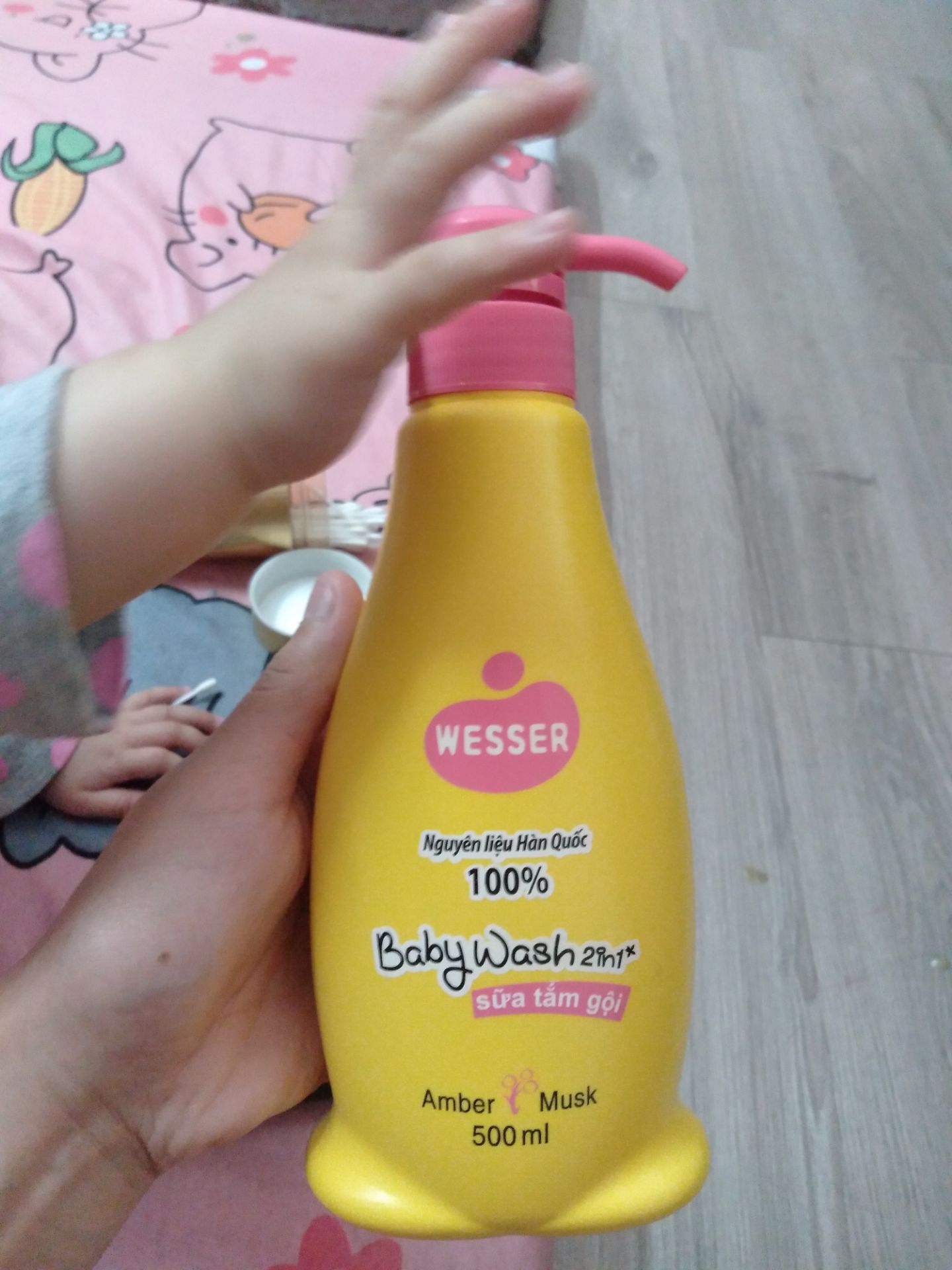 - Sữa Tắm Gội Wesser 2in1 Hương Hổ Phách Xạ Hương (500ml) - Hồng đến từ thương hiệu Wesser (Hàn Quốc) là sản phẩm vệ sinh cho bé được ưa chuộng, có hương phấn thơm dịu nhẹ, giúp làm sạch làn da mỏng manh và lưu thương thơm mát trên da bé.