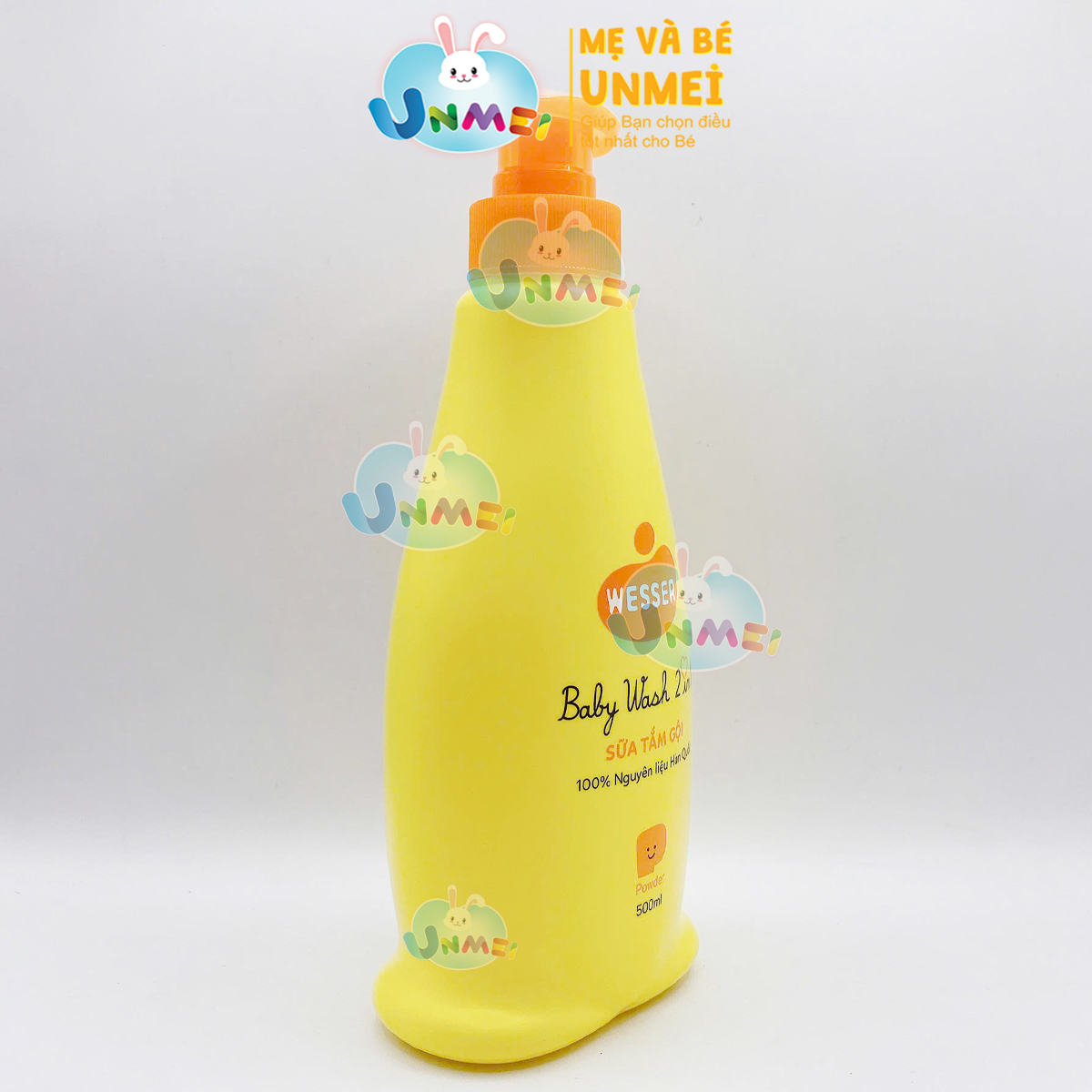 - Sữa Tắm Gội Wesser 2in1 Hương Phấn (500ml) - Cam với hương thơm dịu nhẹ, an toàn cho bé, không gây kích ứng da.