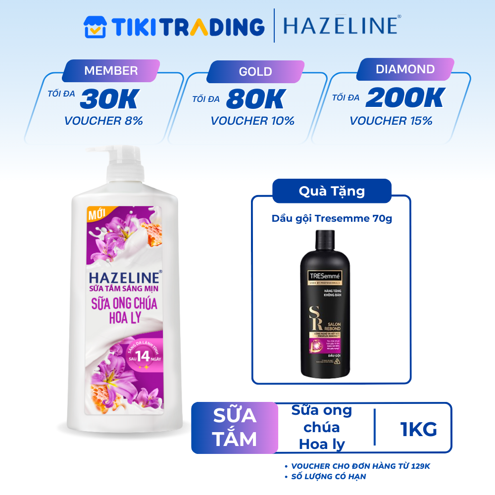 Thông số kỹ thuật Sữa tắm dưỡng thể thiên nhiên trắng sáng da Hazeline 1KG - Sữa ong chúa hoa ly