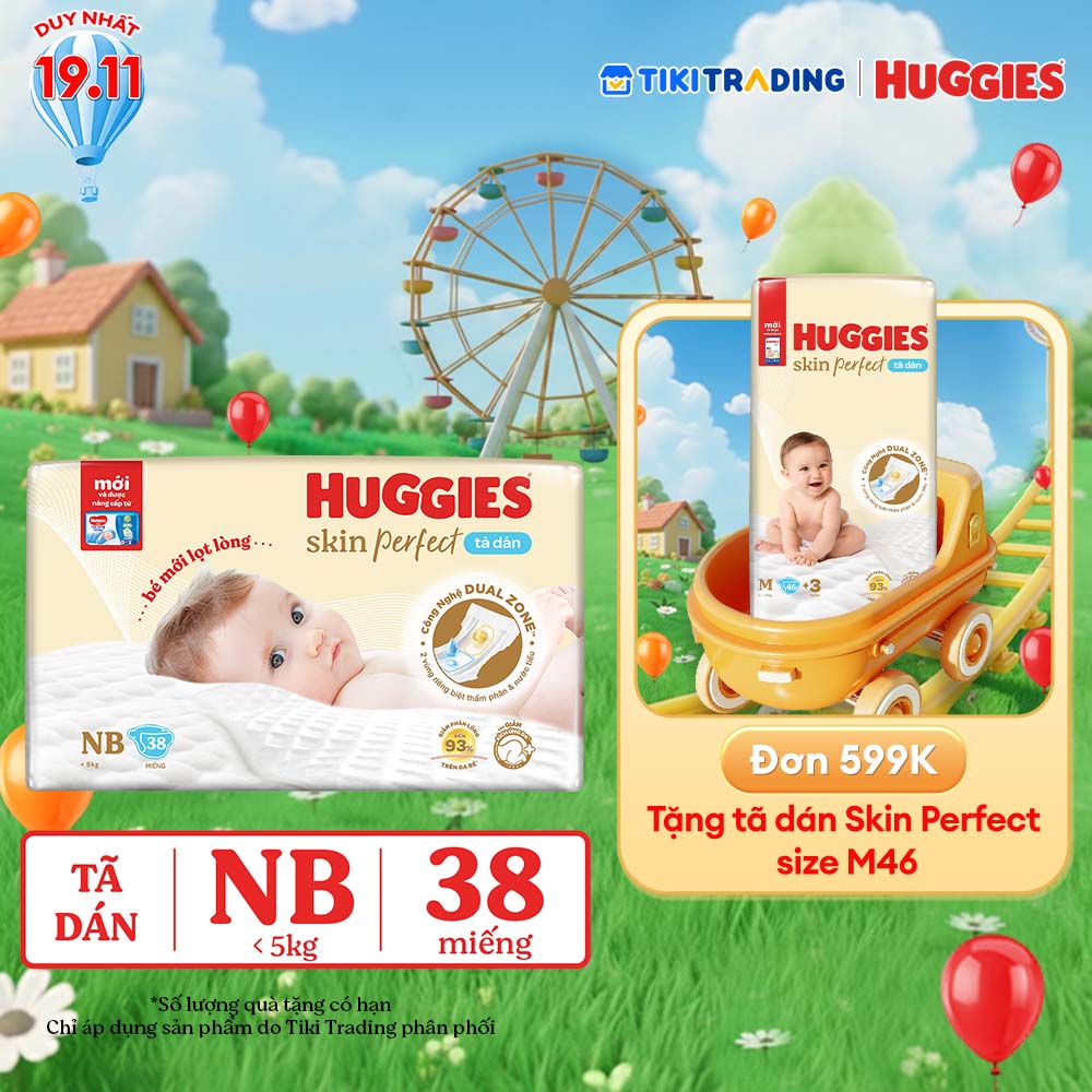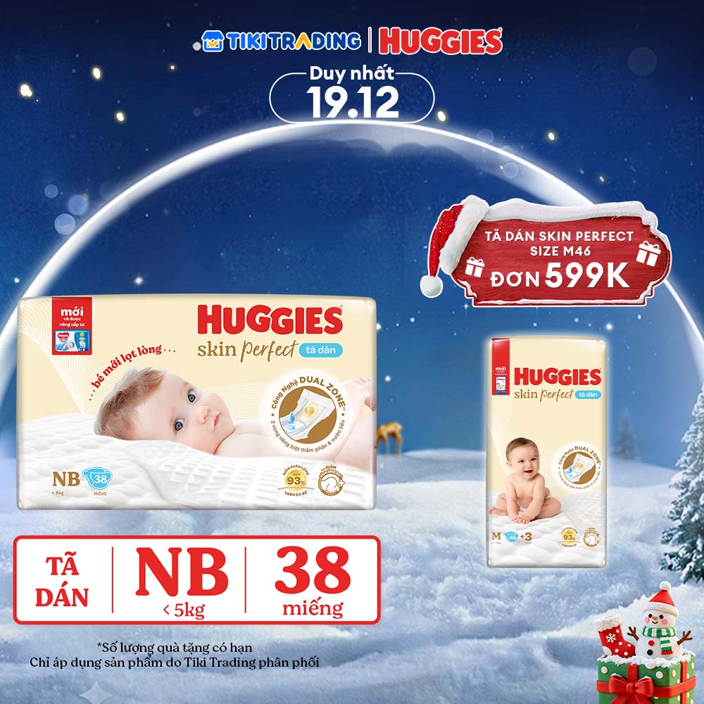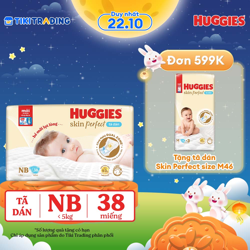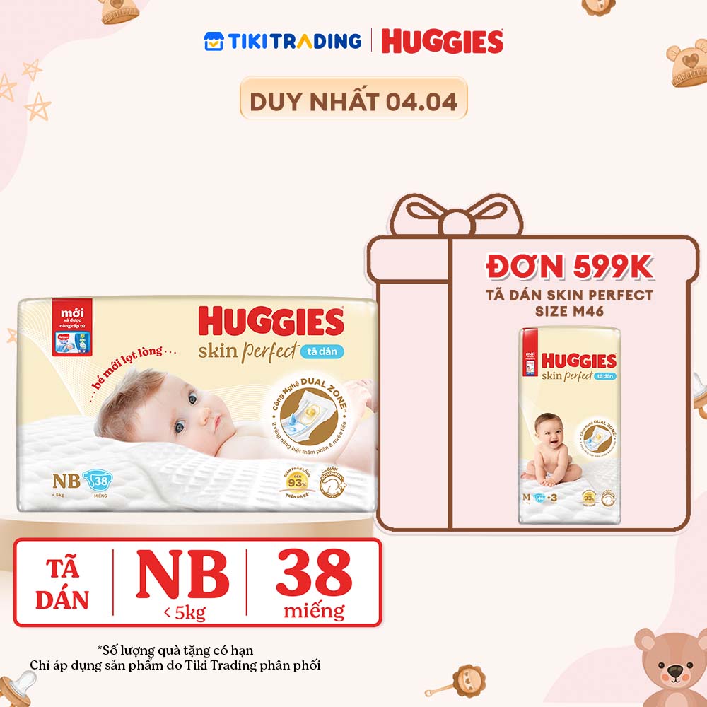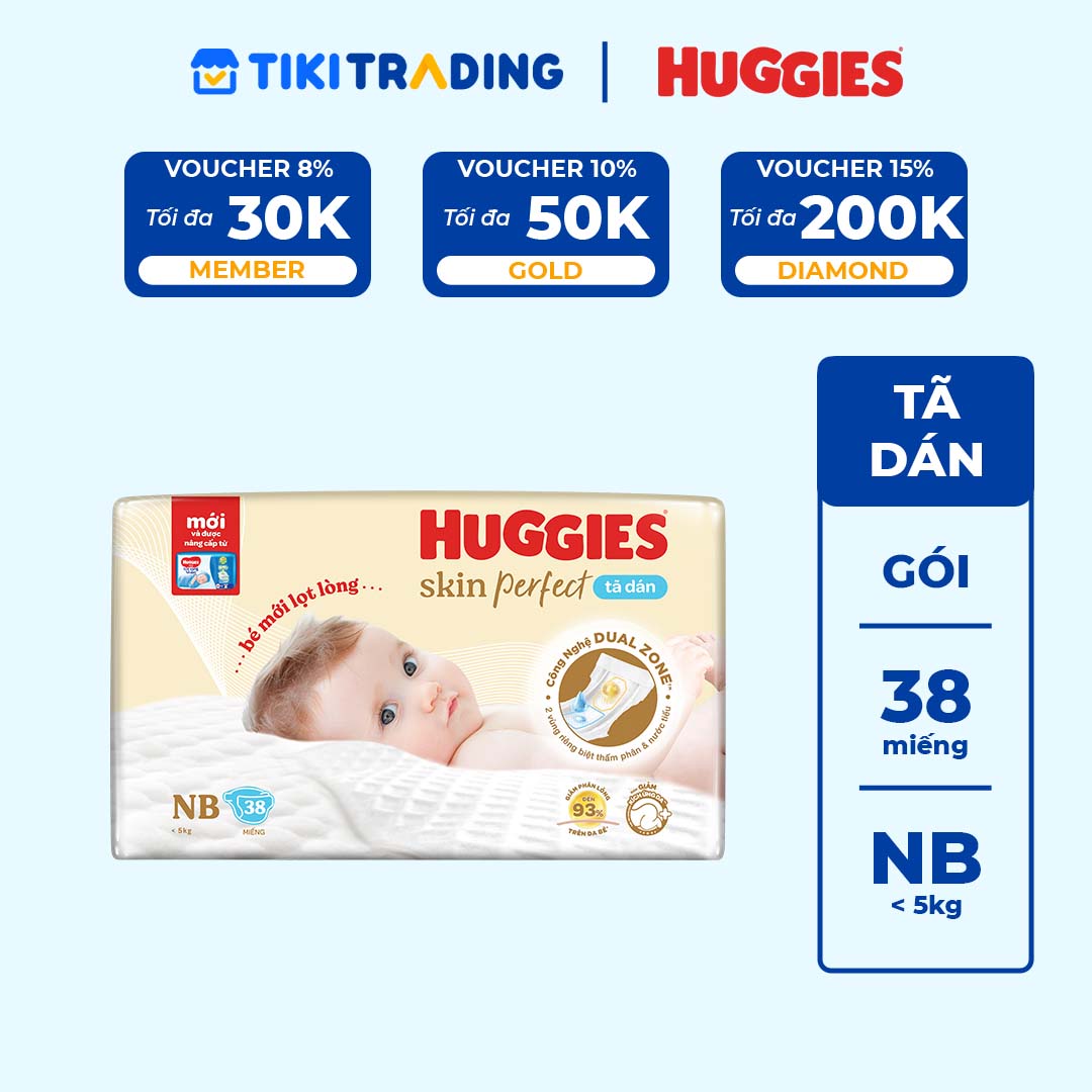 Tã/bỉm dán sơ sinh Huggies Skin Perfect NB 38 miếng
