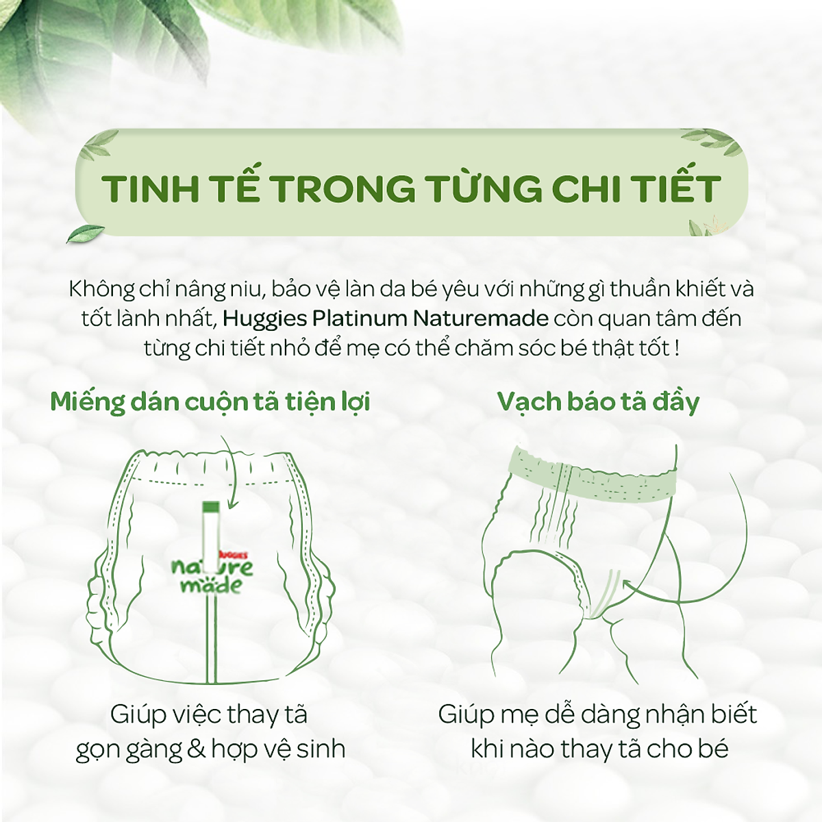 - Không chỉ nâng niu, bảo vệ làn da bé yêu với những gì thuần khiết và tốt lành nhất, Huggies Platinum Nature Made còn quan tâm đến từng chi tiết nhỏ để mẹ có thể chăm sóc bé thật tốt!
