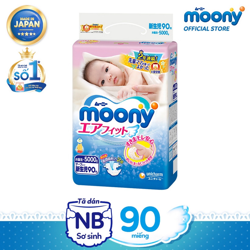 Moony là dòng tã siêu cao cấp được nhập khẩu nguyên gói từ Nhật Bản - nhà sản xuất tã em bé hàng đầu Nhật Bản (Unicharm Nhật Bản). Với chất lượng vượt trội cùng thiết kế độc quyền C-shape - thiết kế đặc biệt dành cho bé, tã dán Moony tự hào là dòng tã được Hiệp hội các bà mẹ Nhật Bản vô cùng yêu thích. Moony mang đầy đủ những ưu điểm nổi trội của dòng tã dán, sẽ là lựa chọn hoàn hảo của mẹ dành cho bé trong những năm tháng đầu đời, giúp bảo vệ sức khỏe bé tốt hơn.