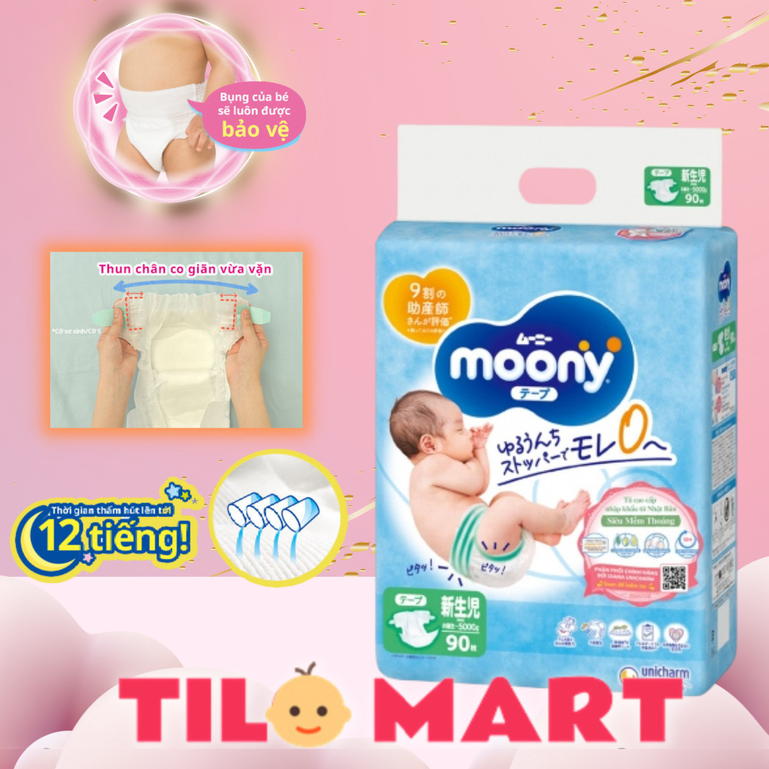 - Tã Dán Moony Newborn-90 Miếng dùng cho trẻ dưới 5kg.