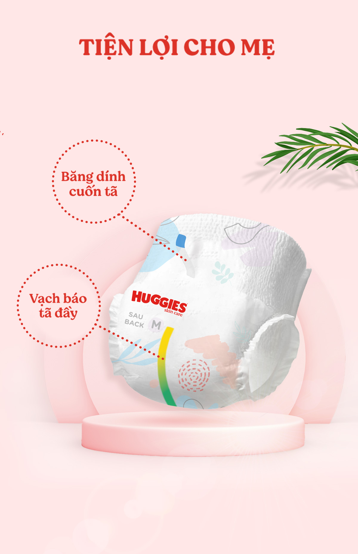 - Tã dán Huggies Skin Care Tràm Trà Tự Nhiên là một sản phẩm chăm sóc cho bé xuất xứ từ Việt Nam và được sản xuất bởi Công ty TNHH Kimberly-Clark Việt Nam. Được cải tiến từ Huggies Dry Tràm trà tự nhiên, sản phẩm này đáp ứng các tiêu chuẩn ngày càng cao hơn về độ thoải mái, an toàn và bảo vệ làn da nhạy cảm của bé. Hãy để tã dán Huggies Skin Care Tràm Trà Tự Nhiên trở thành người bạn đồng hành đáng tin cậy của bố mẹ.
