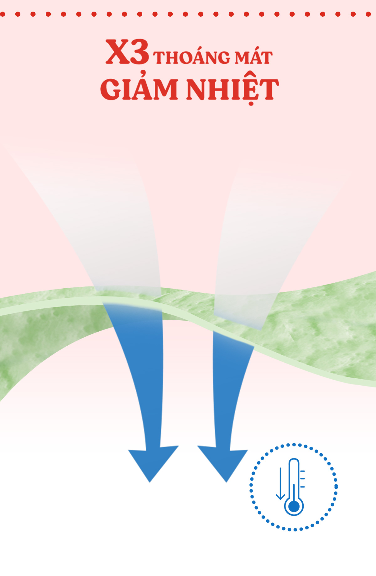 - Khả năng thoáng khí được chứng minh lâm sàng giúp NGỪA HĂM TÃ, cho da bé luôn được khô thoáng dài lâu.