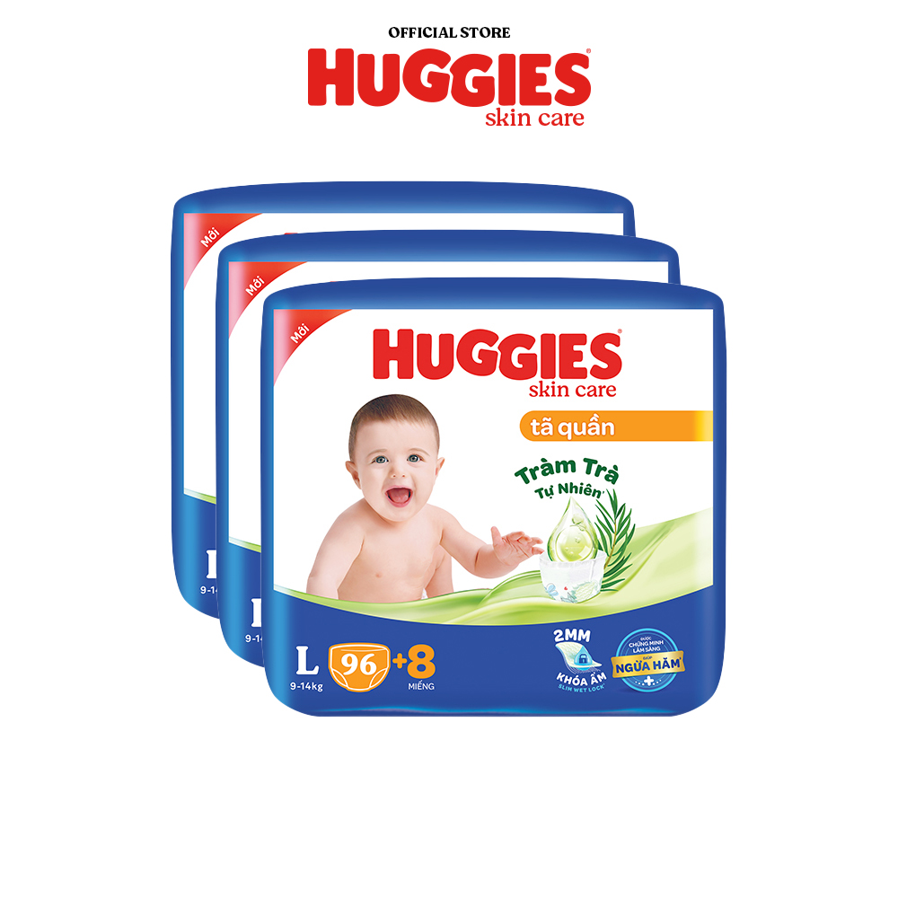 Thông số kỹ thuật [TẶNG THÊM MIẾNG CHO SIZE L/XL/XXL] Combo 3 gói Tã quần Huggies Skincare Mega Jumbo M106/L96/XL84/XXL76