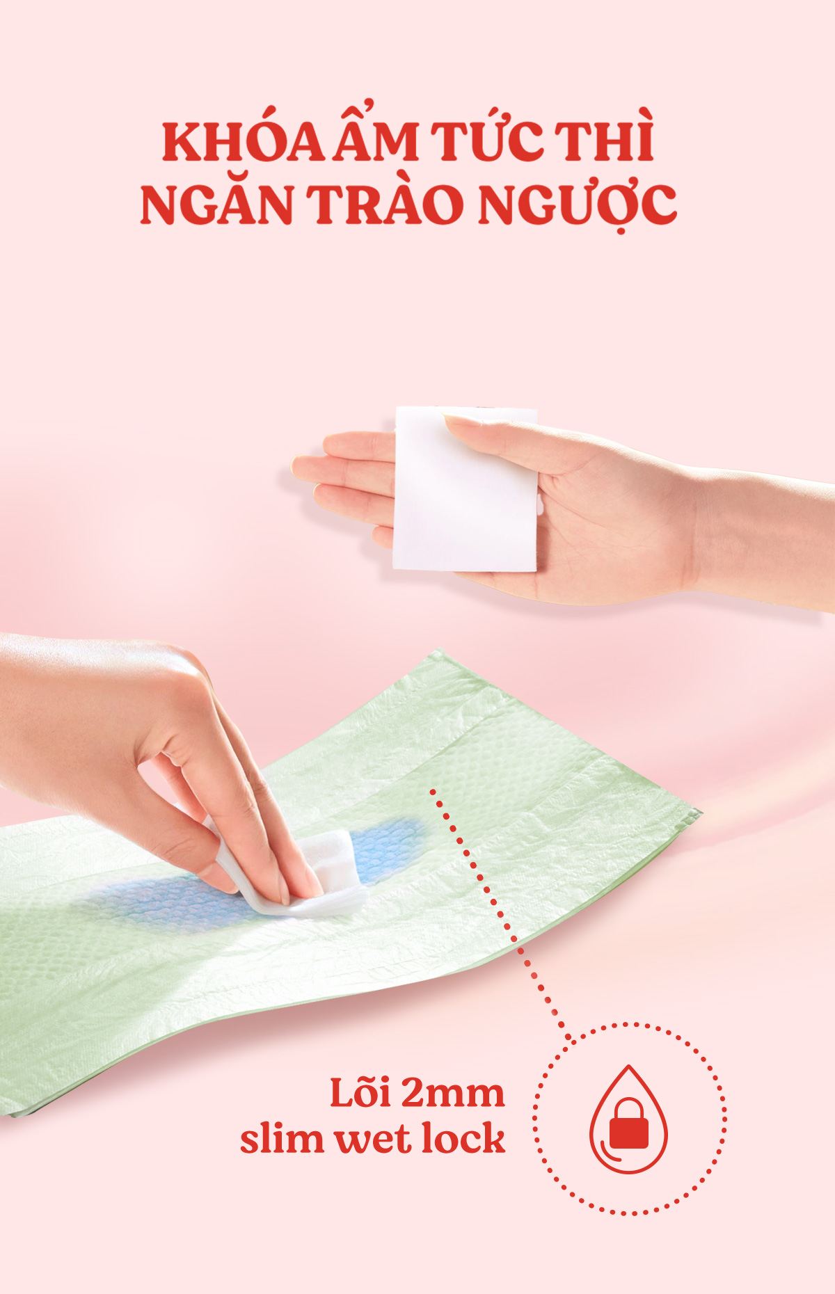 - Công nghệ BONG BÓNG 3D - Ngăn thấm ngược giúp thấm hút tức thì, khóa chặt chất lỏng sâu bên trong và ngăn thấm ngược.