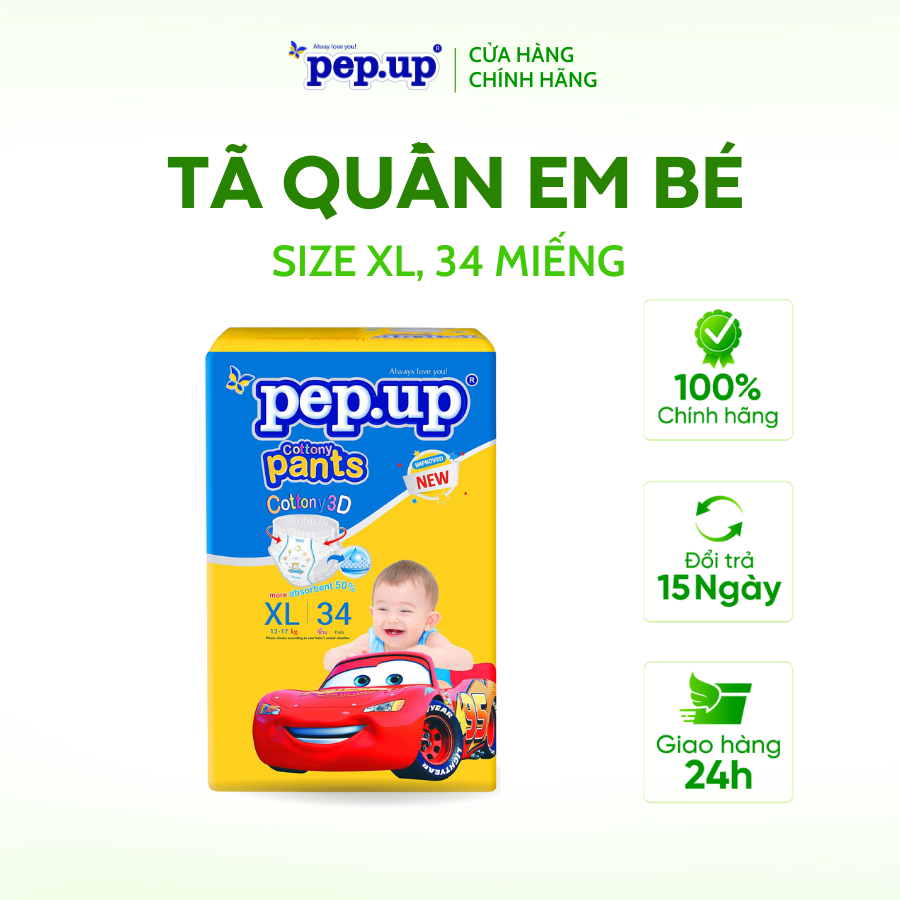 Thông số kỹ thuật Tã/Bỉm Quần Em Bé Pep.up Cottony 3D Gói Đại Siêu Mềm Mại, Siêu Khô Thoáng, Kháng khuẩn Size S/M/L/XL
