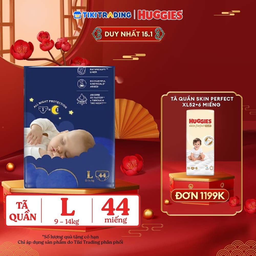 Thông số kỹ thuật Tã quần Huggies Naturemade ban đêm L 44 miếng