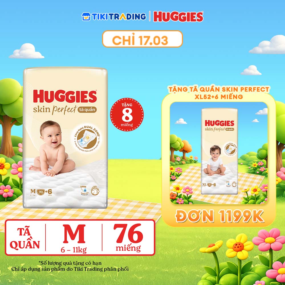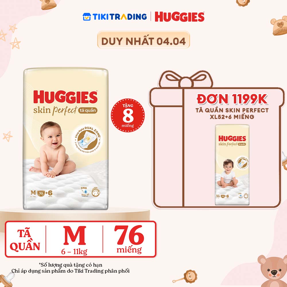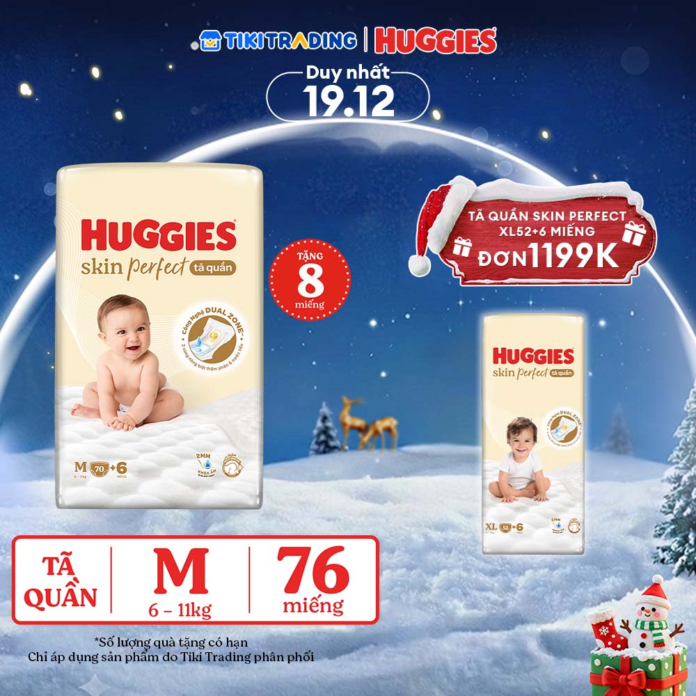 Thông số kỹ thuật Tã quần Huggies Skin Perfect M Super Jumbo 70+6 miếng với 2 vùng thấm giảm kích ứng da