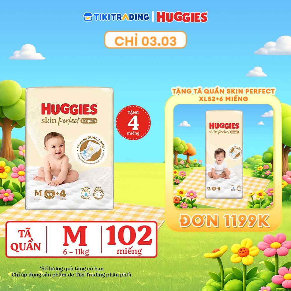Tã Huggies Skin Perfect là dòng tã cao cấp được thiết kế đặc biệt với công nghệ Dual Zone và khả năng thấm hút xuyên đêm, giúp giữ da bé luôn khô thoáng và giảm kích ứng.