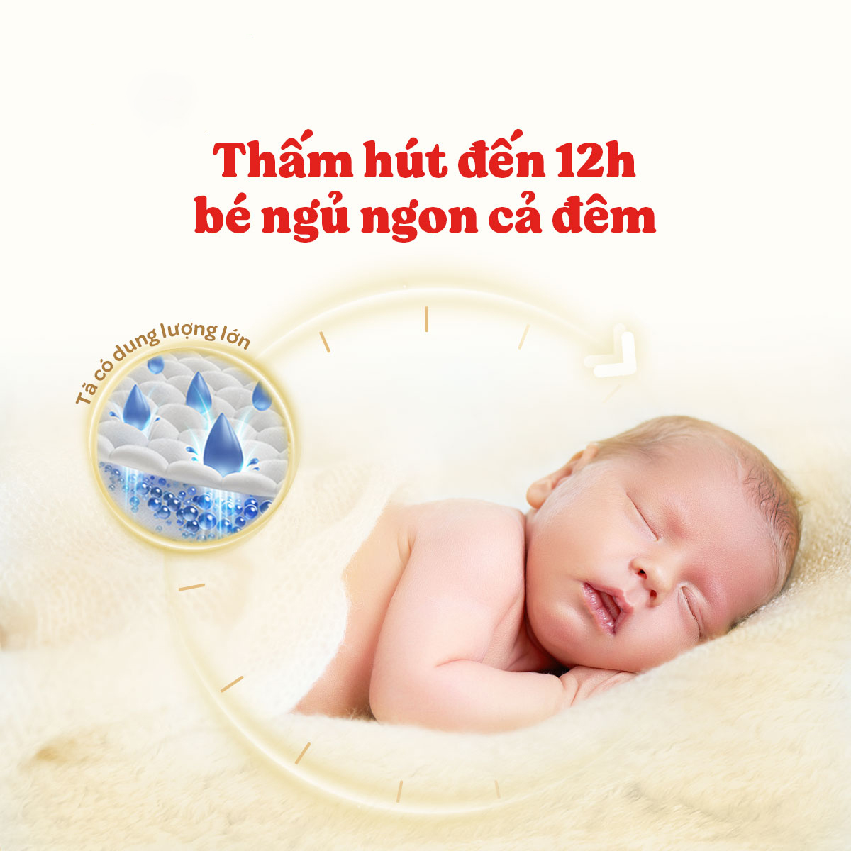 - Thấm hút xuyên đêm đến 12h**** với dung lượng thấm hút lớn cho bé yên giấc trọn đêm.