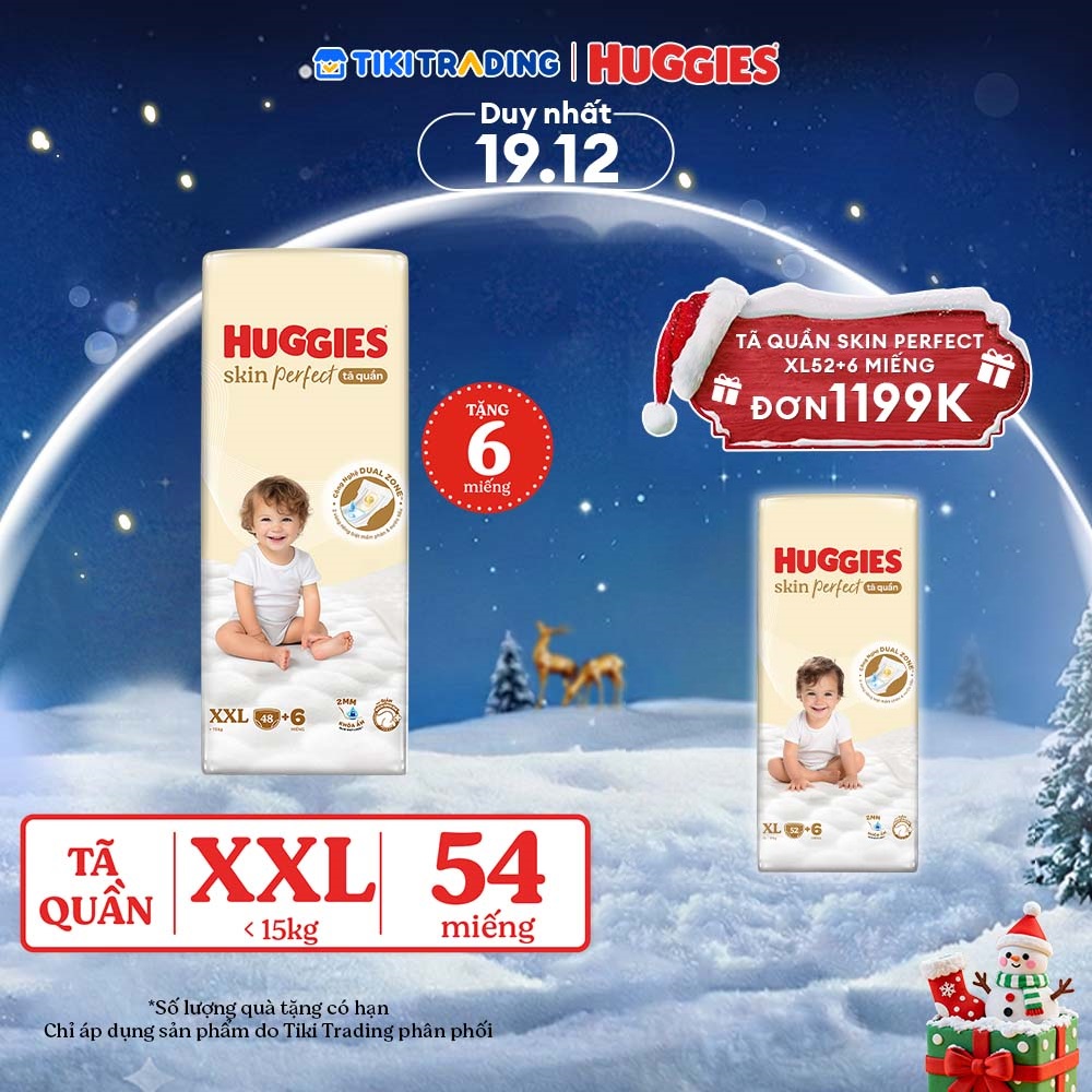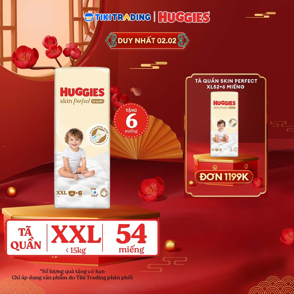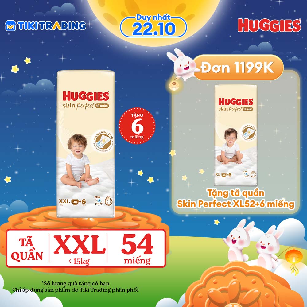 Thông số kỹ thuật Tã quần Huggies Skin Perfect XXL Super Jumbo 48+6 miếng với 2 vùng thấm giảm kích ứng da