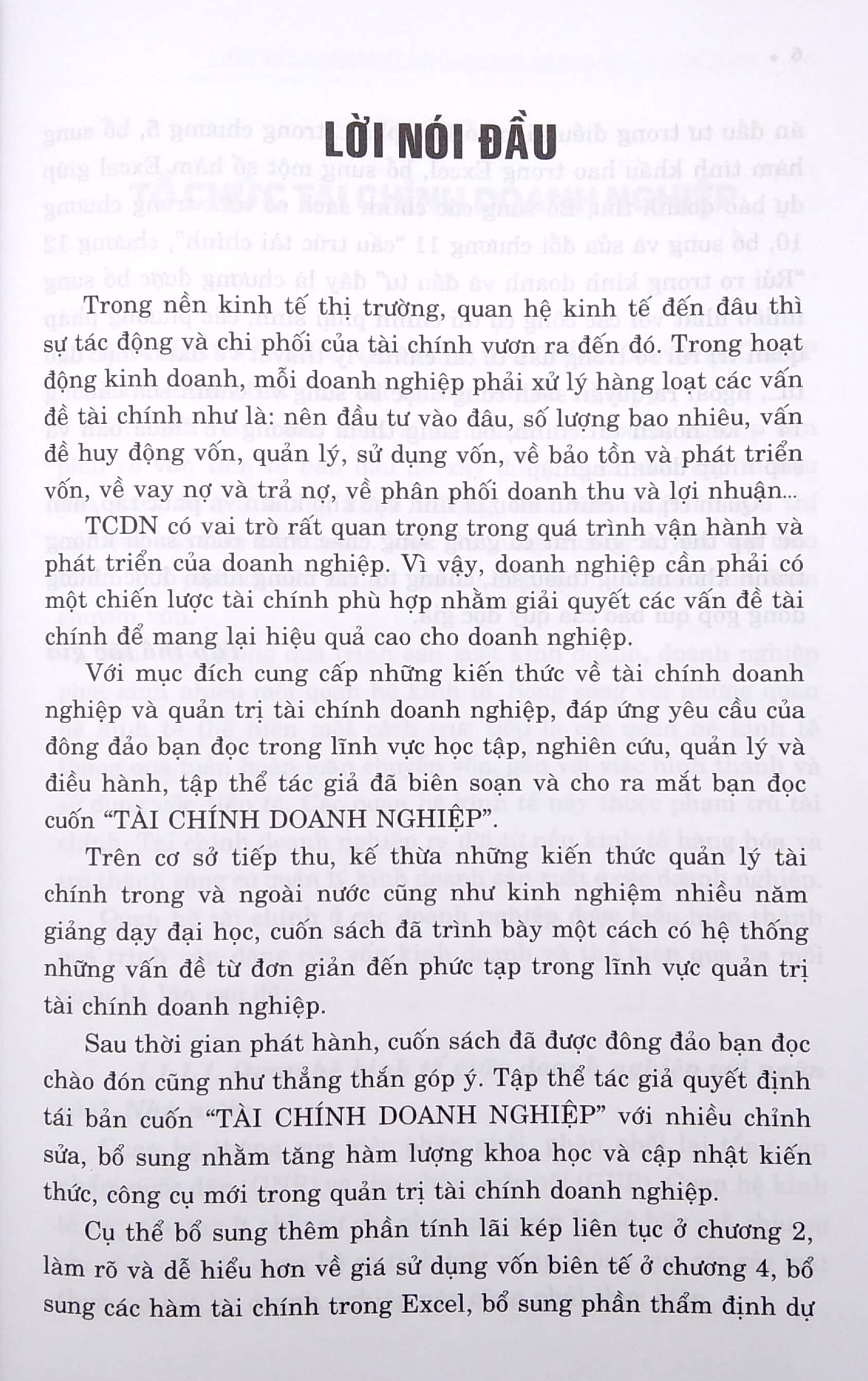 Sau thời gian phát hành, cuốn sách này đã được đông đảo bạn đọc chfo đón cũng như thẳng thắn góp ý. Tập thể tác giải quyết định tái bản cuốn "TÀI CHÍNH DOANH NGHIỆP" với nhiều chỉnh sửa, bổ sung nhằm tăng hàm lượng khoa học và cập nhật kiến thức, công cụ mới trong quản trị tài chính doanh nghiệp.