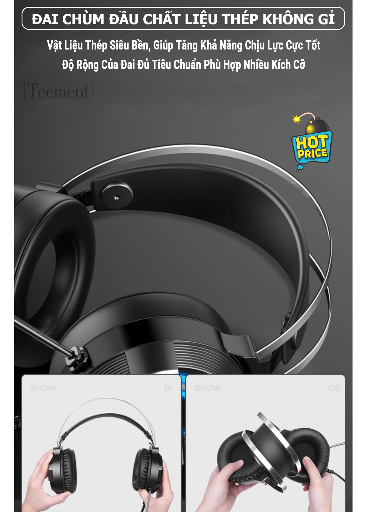 Tai Nghe Chụp Tai Máy Tính Teement TM01 Gaming Mc Q9 Có Đèn Led Đổi Màu, Mic Đàm Thoại, Headphone Chơi Game Trên Laptop, Pc - Hàng Chính Hãng