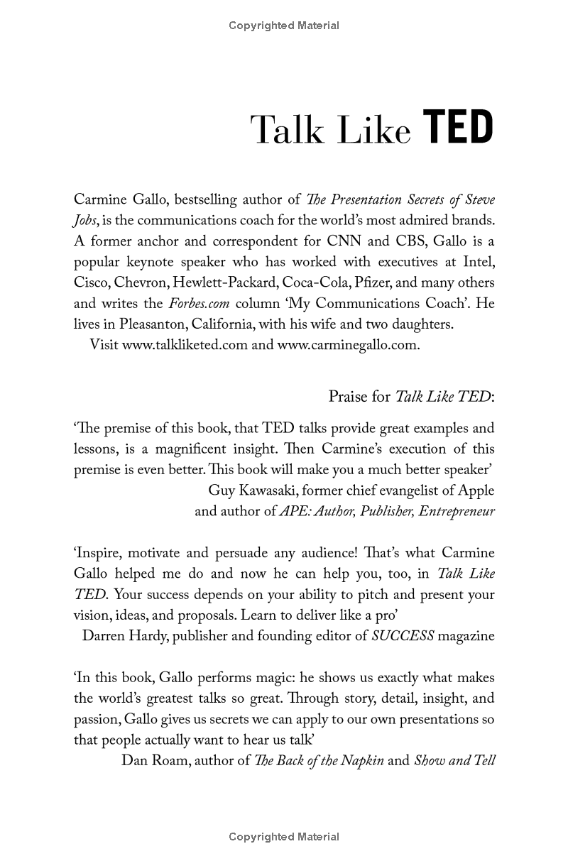 Ideas are the true currency of the twenty-first century, and Talk Like TED gives readers a way to create presentations around the ideas that matter most to them, presentations that will energize their audiences to spread those ideas, launch new initiatives, and reach their highest goals.