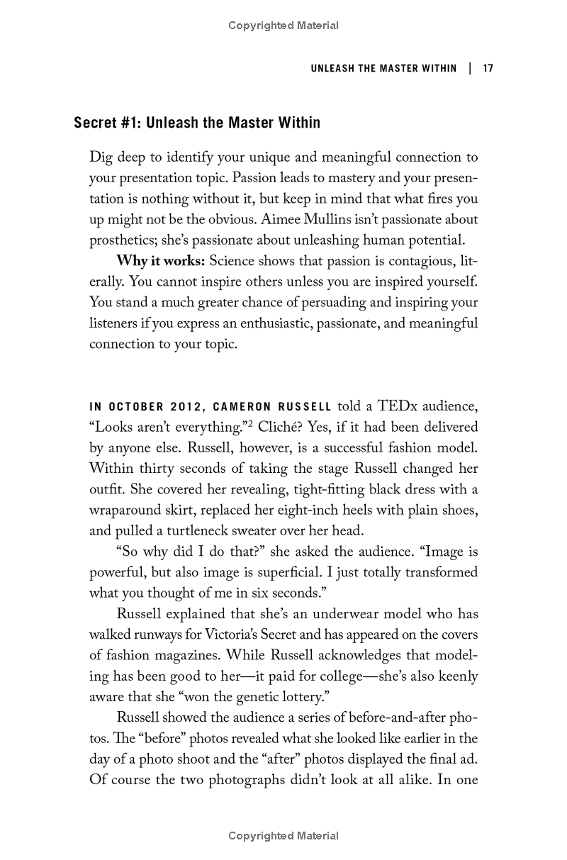 TED Talks have redefined the elements of a successful presentation and become the gold standard for public speaking around the world. And yet the techniques that top TED speakers use are the same ones that will make any presentation more dynamic, fire up any team, and give anyone the confidence to overcome their fear of public speaking.