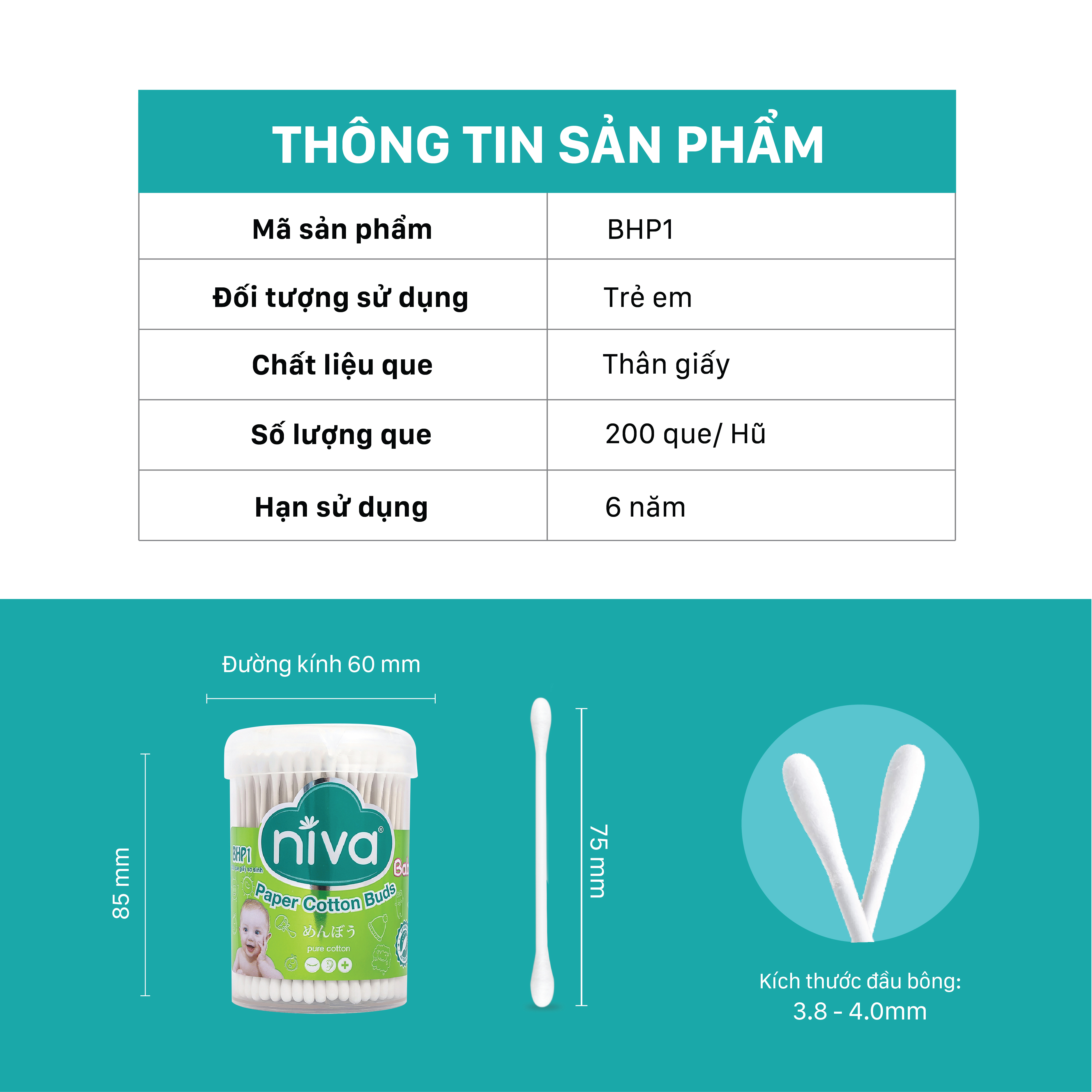 Thông số kỹ thuật Tăm bông Niva hũ xoay trẻ em sợi bông mềm 200 que giấy BHP1