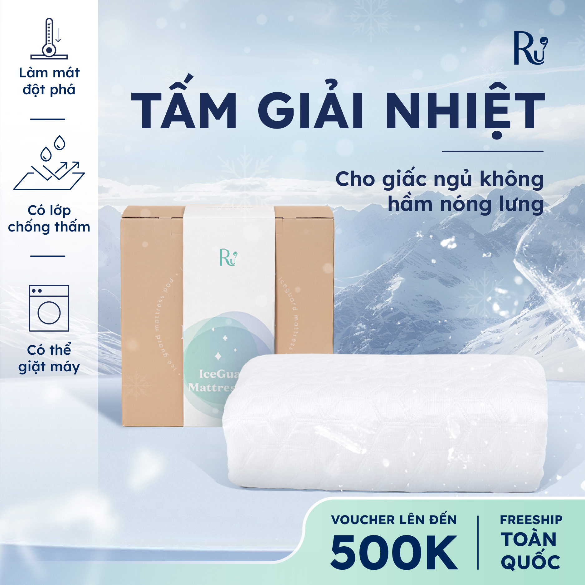 Tấm Giải Nhiệt IceGuard (IceGuard Pad) Ru9 | Mát Lạnh Cho Giấc Ngủ | Chiếu Điều Hòa, Êm Ái | 6 Kích Thước | 1m2, 1m4, 1m6, 1m8, 2m, 2m2