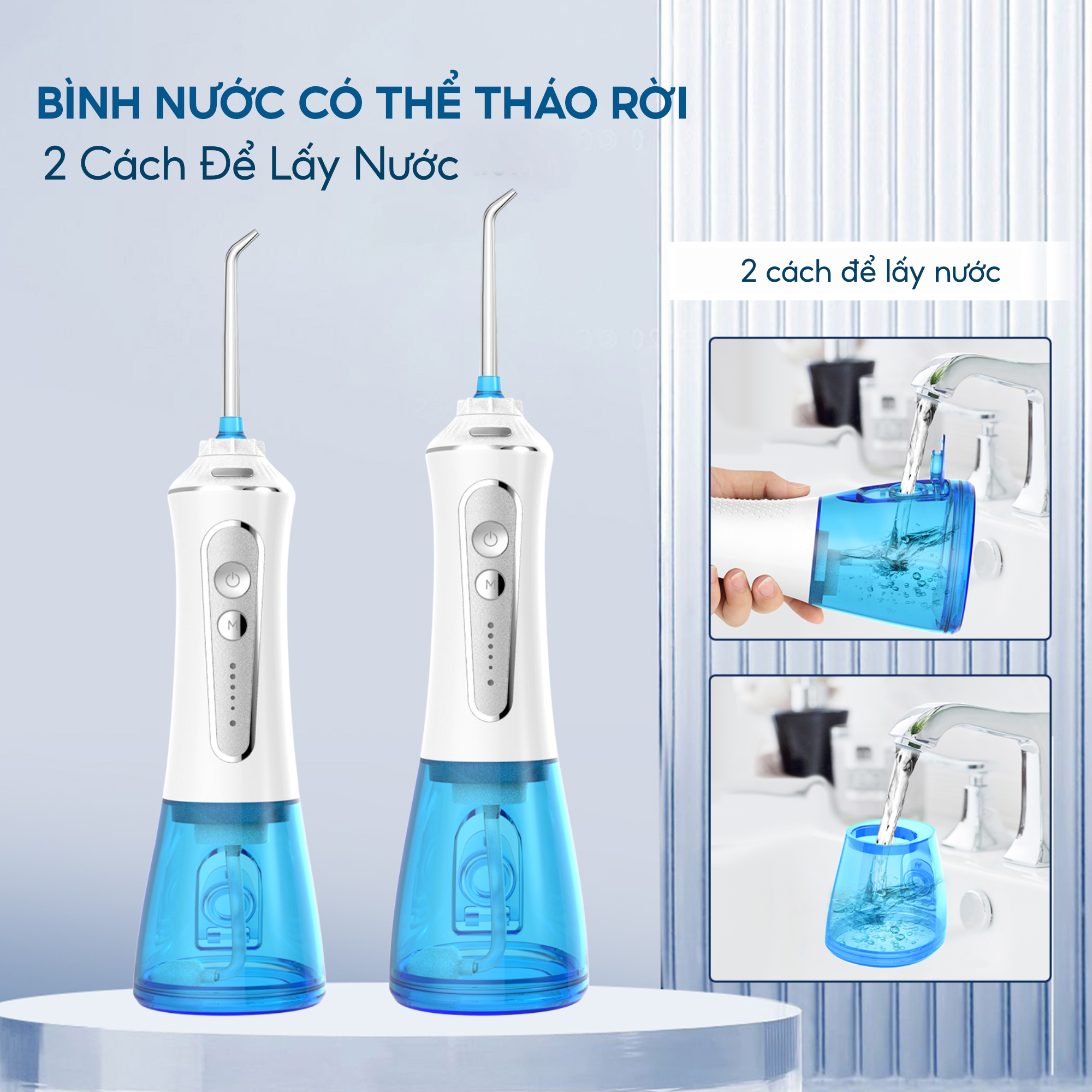 - Nước phun 1400 lần 1 phút với tia nước siêu âm, dễ dàng làm sạch mảng bám ở các kẽ răng