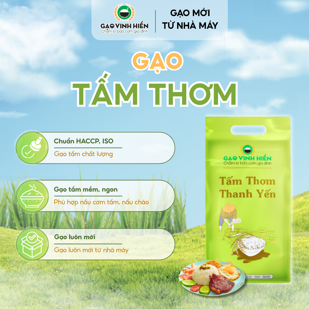 Gạo tấm thanh yến là gạo bị vỡ khi xay sàng gạo, thơm và rất dễ nấu. Dinh dưỡng của gạo tấm giống hệt thành phần của dinh dưỡng của gạo nguyên hạt. Bên cạnh việc dùng để nấu cơm tấm thì còn dùng để nấu các món cháo, hạt gạo được chọn từ những loại gạo thơm đặc sản kết hợp với công nghệ sản xuất HACCP.