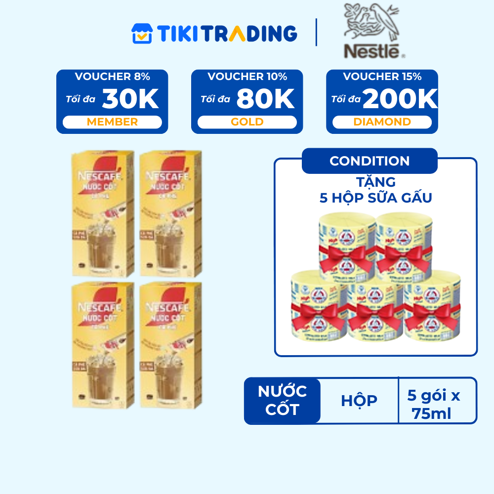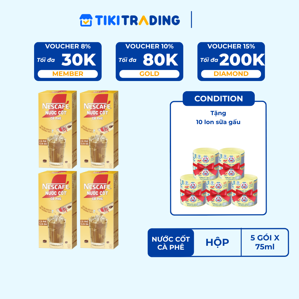 Thông số kỹ thuật [TẶNG 5 Hộp Sữa Gấu] Combo 4 hộp nước cốt cà phê NESCAFÉ - CÀ PHÊ SỮA ĐÁ (4 hộp x 5 gói x 75ml)