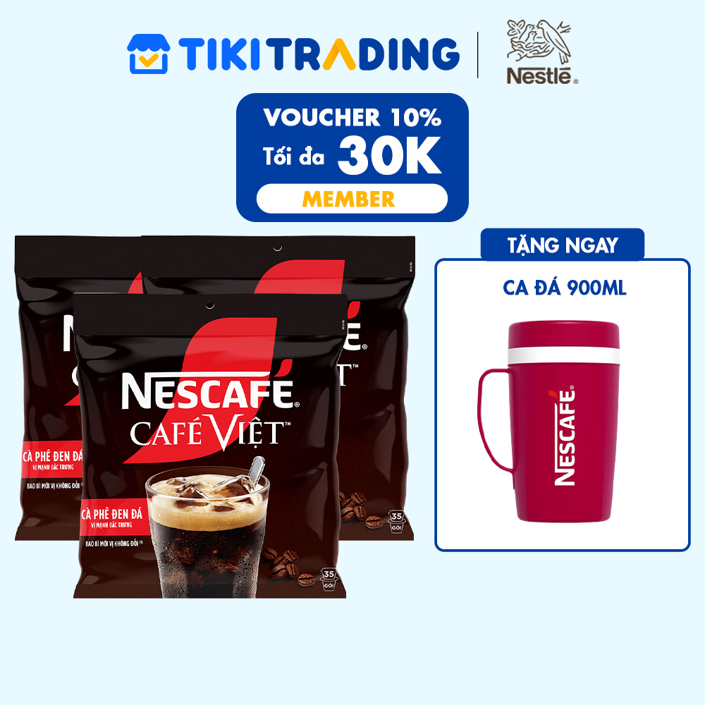 - Combo 3 Bịch Cà phê đen hòa tan NESCAFE Café Việt (Túi 35 gói x 16g)