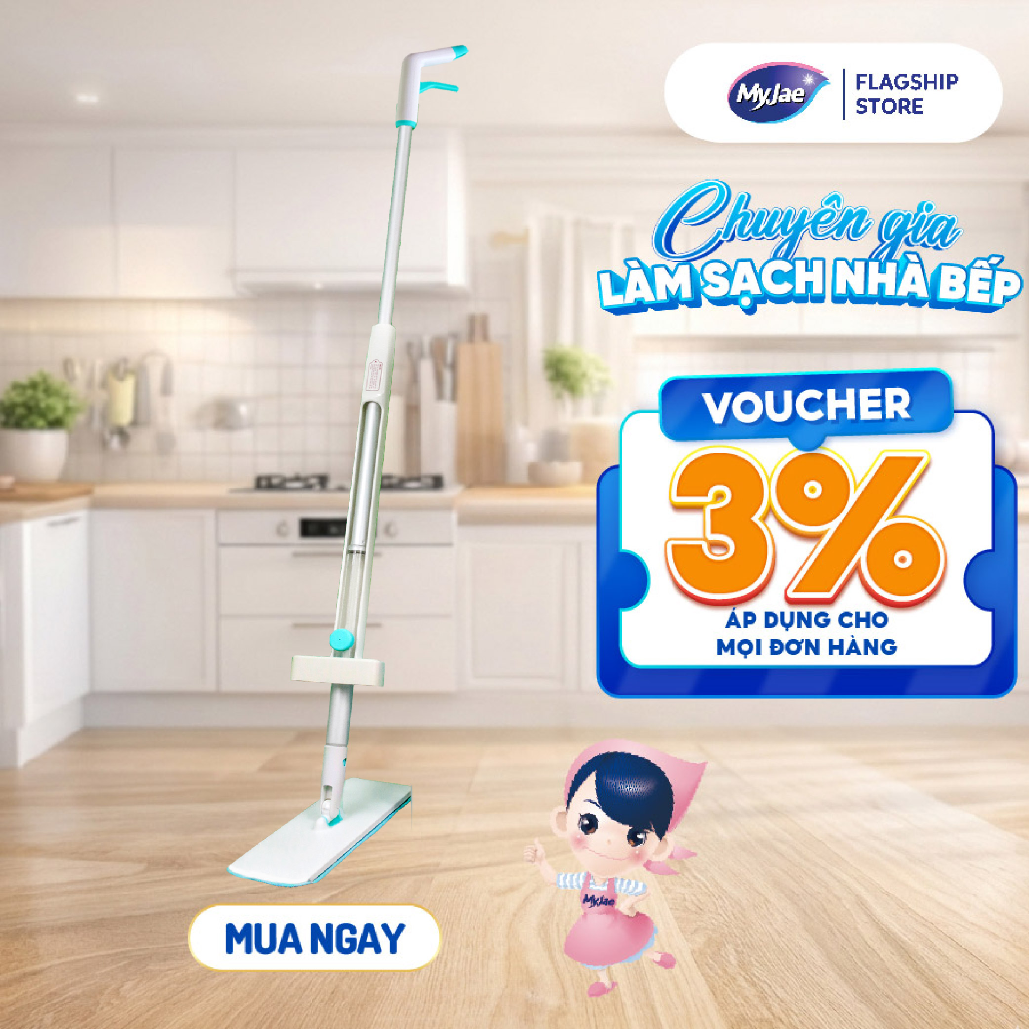Thông số kỹ thuật [Tặng Bông Lau] Cây Lau Nhà MyJae Sợi Microfiber Tự Vắt Phun Sương Xoay 360 Độ Thông Minh 138cm
