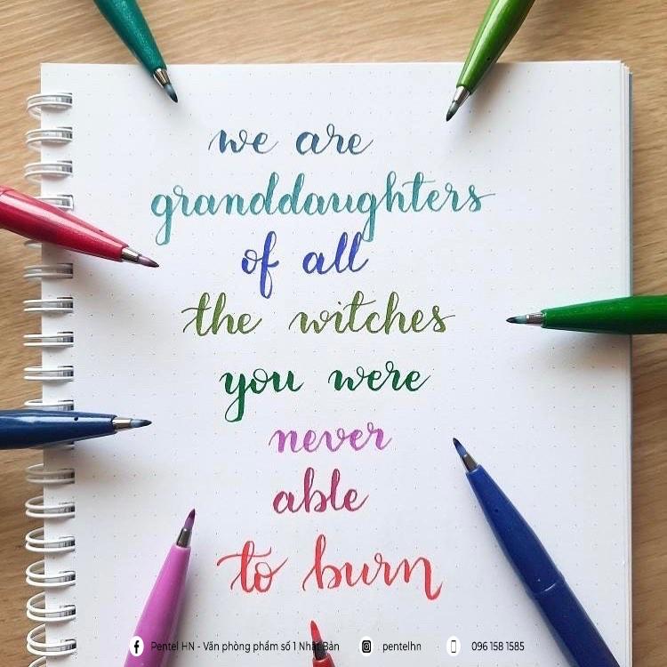 - Bút Viết Thư Pháp Calligraphy Brush Sign Pen SES15C có khả năng kiểm soát nét chính xác lại dễ điều khiển hơn bút đầu lông mềm nên Pentel Brush Sign Pen là sự lựa chọn phù hợp cho người viết Brush lettering.