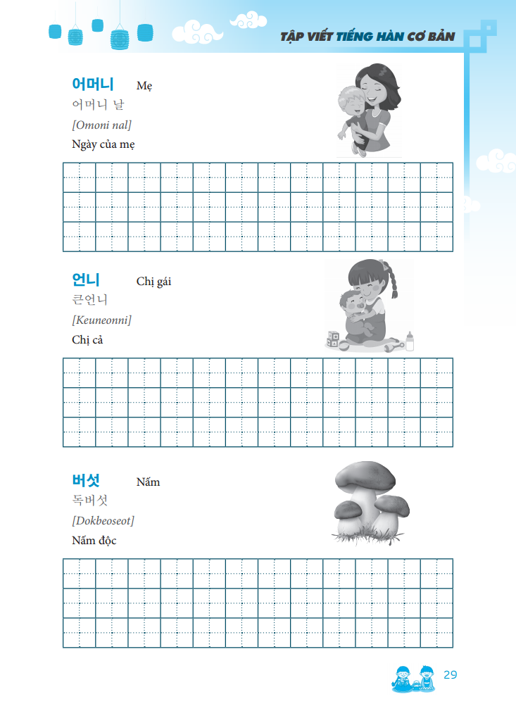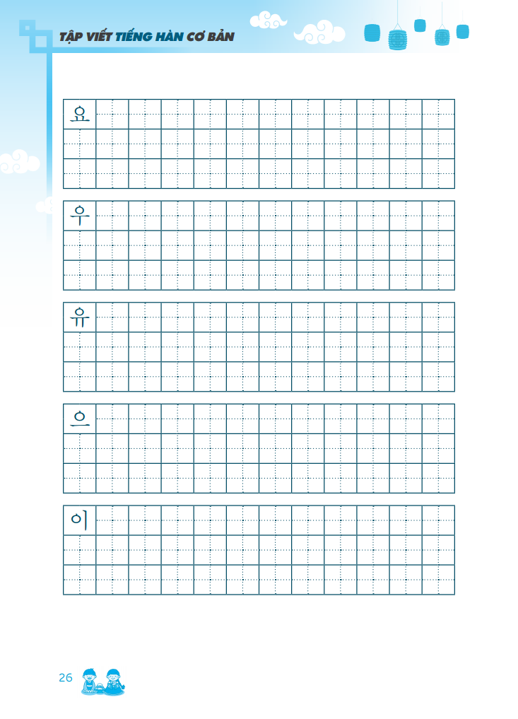 Luyện viết tiếng Hàn: Phần này giúp bạn luyện viết các chữ cái và từ vựng trong tiếng Hàn.