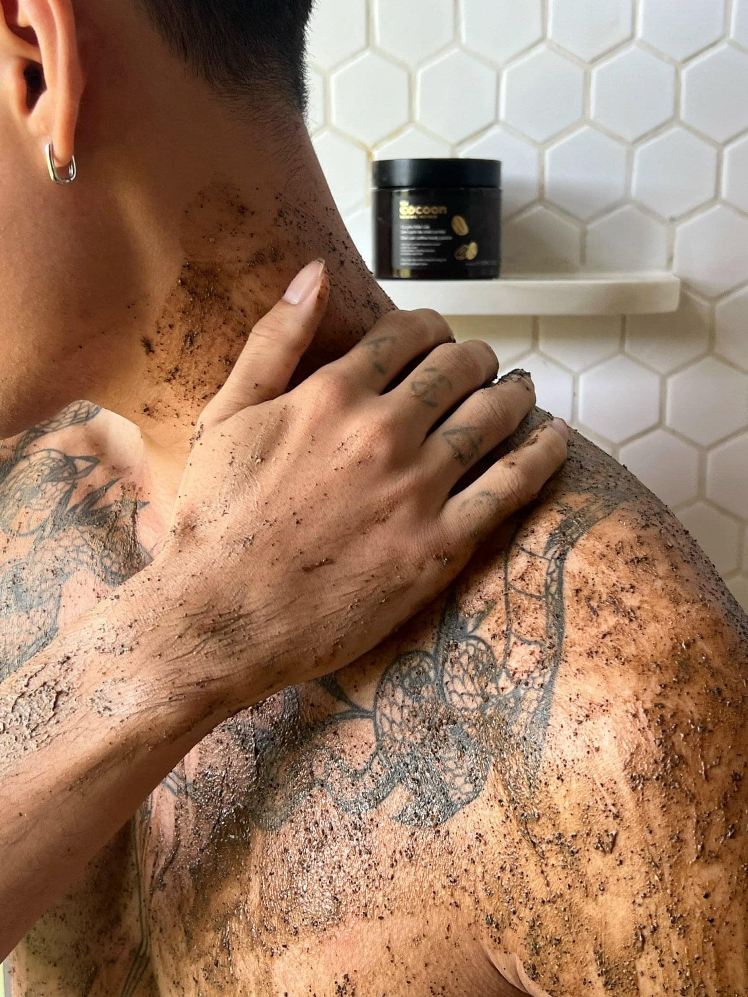 Aqua/Water, Coffea Arabica (coffee) Seed Powder, Cetearyl Alcohol, Cocos Nucifera (coconut) Oil, Cocamidopropyl Betaine, Glyceryl Stearate, C15-19 Alkane, Glycerin, Ceteareth-20, Ceteareth-12, Theobroma Cacao (Cocoa) Seed Butter, Butyrospermum Parkii (shea) butter, Cetyl Palmitate, Glycine Soja (soybean) Sterols, Phospholipids, Crosspolymer, Tocopheryl Acetate, Xanthan gum, Phenoxyethanol, Sodium Hydroxide, BHT, Ethylhexylglycerin, Trisodium Ethylenediamine Disuccinate.