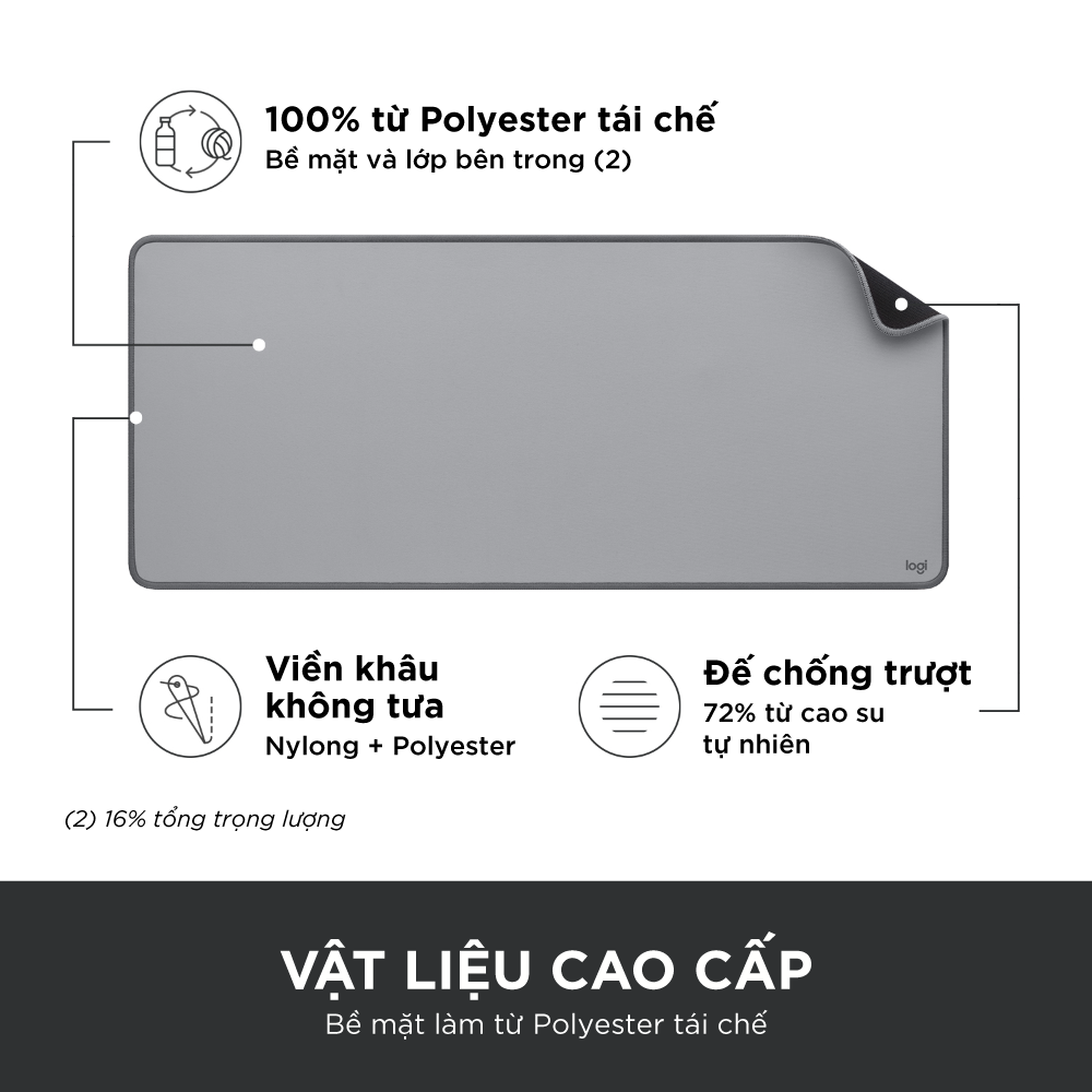 Thông số kỹ thuật Thảm trải bàn làm việc Logitech Studio Series - Đế cao su chống trượt, lướt dễ dàng, bề mặt chống đổ tràn, bền bỉ, nhỏ gọn, hiện đại – Hàng Chính Hãng