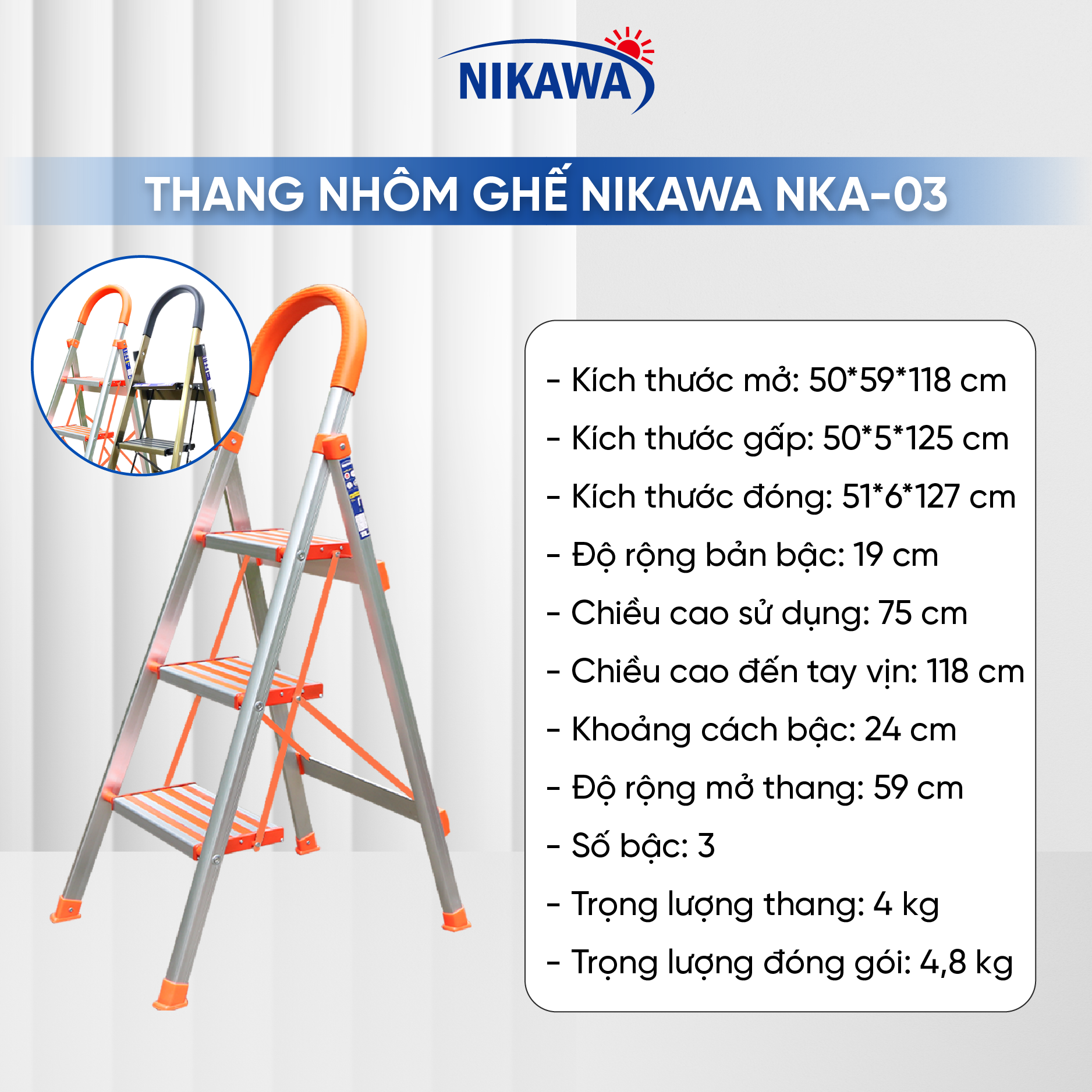 Thông số kỹ thuật Thang Ghế Nikawa NKA-03 - 3 Bậc - 73cm - Màu Bạc