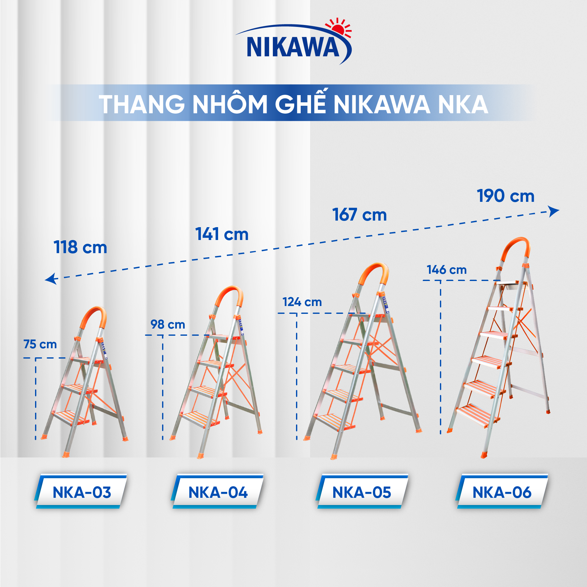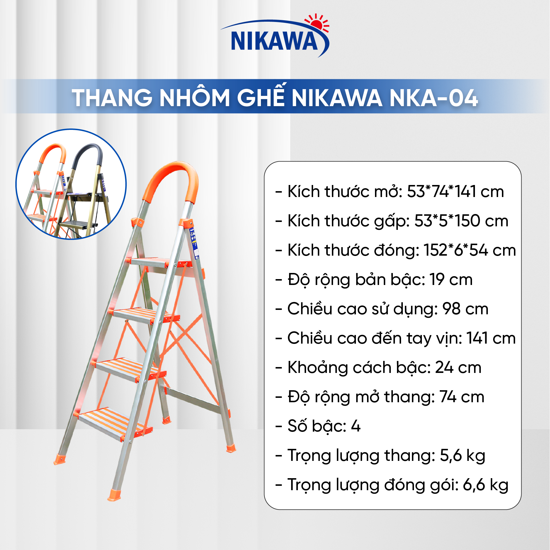 Thông số kỹ thuật Thang Ghế Nikawa NKA-04 - 4 Bậc - 97cm - Màu Bạc