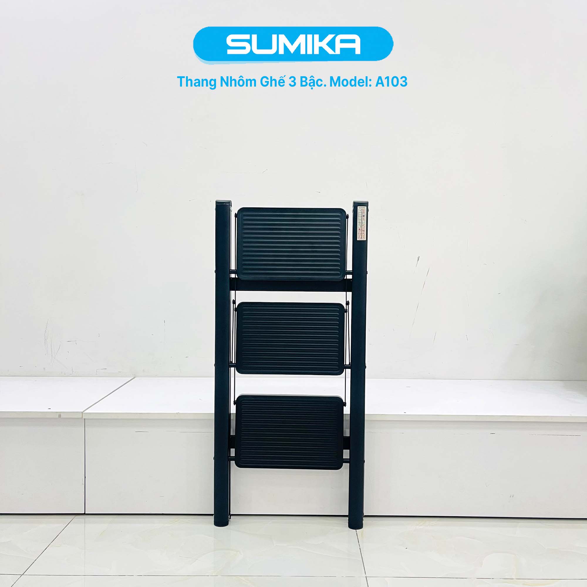 Thang nhôm ghế 3 bậc SUMIKA A103 là một trong những sản phẩm tiêu biểu, được thiết kế dưới dạng hình chiếc ghế với 4 bậc thang, giúp quá trình lên xuống, làm việc trên độ cao nhất định an toàn, thoải mái hơn.