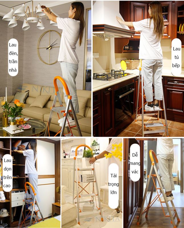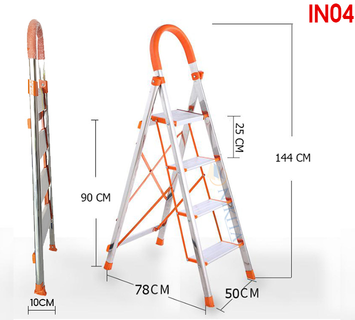 Thang Inox tay vịn thích hợp sử dụng cho phụ nữ, dùng làm vườn, lấy hồ sơ, thay bóng đèn, lau cửa kính…