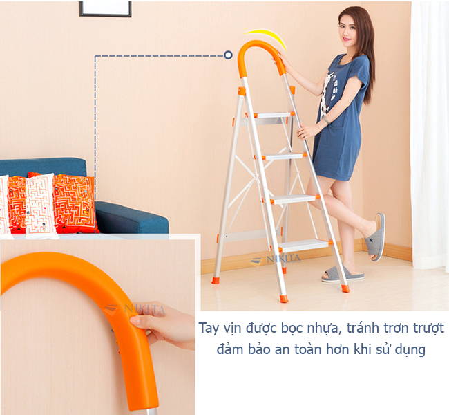 Thang được thiết kế với mẫu mã đẹp, rất tiện lợi cho gia đình, dễ dàng cất gọn sau cánh cửa, sau tủ hay gầm giường…