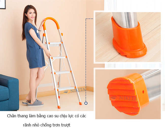 • CHÂN THANG: làm bằng cao su chịu lực có các rãnh nhỏ chống trơn trượt