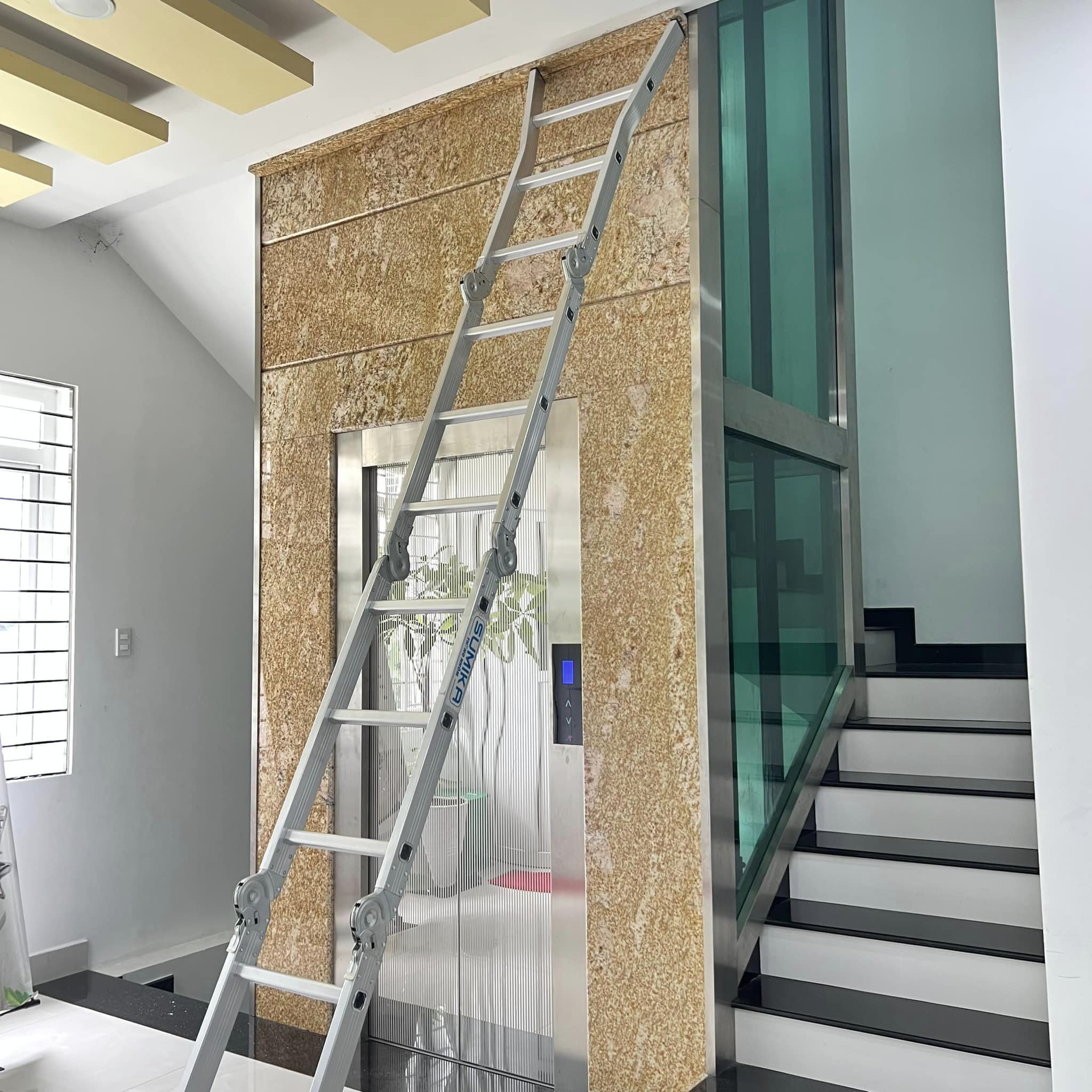 - Thang nhôm gấp có trọng lượng nhẹ thích hợp cho việc sử dụng trong gia đình, văn phòng hay các công trình.