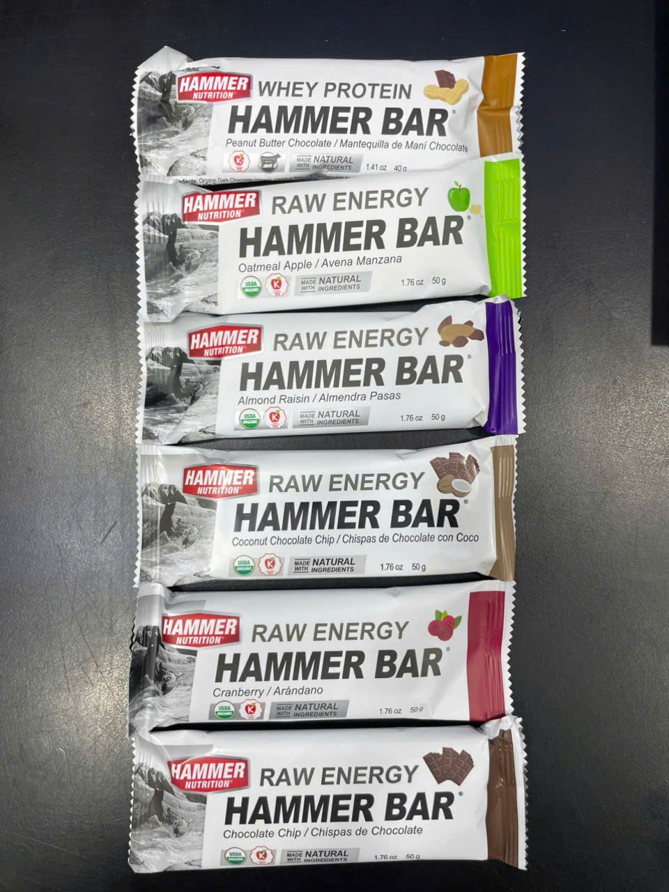 Thành phần chính gồm bơ hạt (hạnh nhân hoặc hạt điều), mứt chà là, mật củ sắn hữu cơ, yến mạch, hạt lanh, hạt diêm mạch, nho khô hoặc nam việt quất khô tùy hương vị. Ngoài ra còn có bột quế, sô cô la chips hữu cơ, protein từ đậu và bí đỏ. Sản phẩm không chứa đường tinh luyện, không chất bảo quản, không sữa và không gluten.
