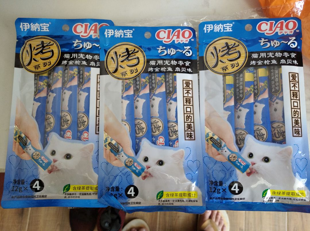 Bánh thưởng dạng liếm cho mèo gồm một gói lớn có 4 gói nhỏ tiện lợi hơn cho mỗi lần sử dụng gồm 13 vị thơm ngon cho các bé yêu: