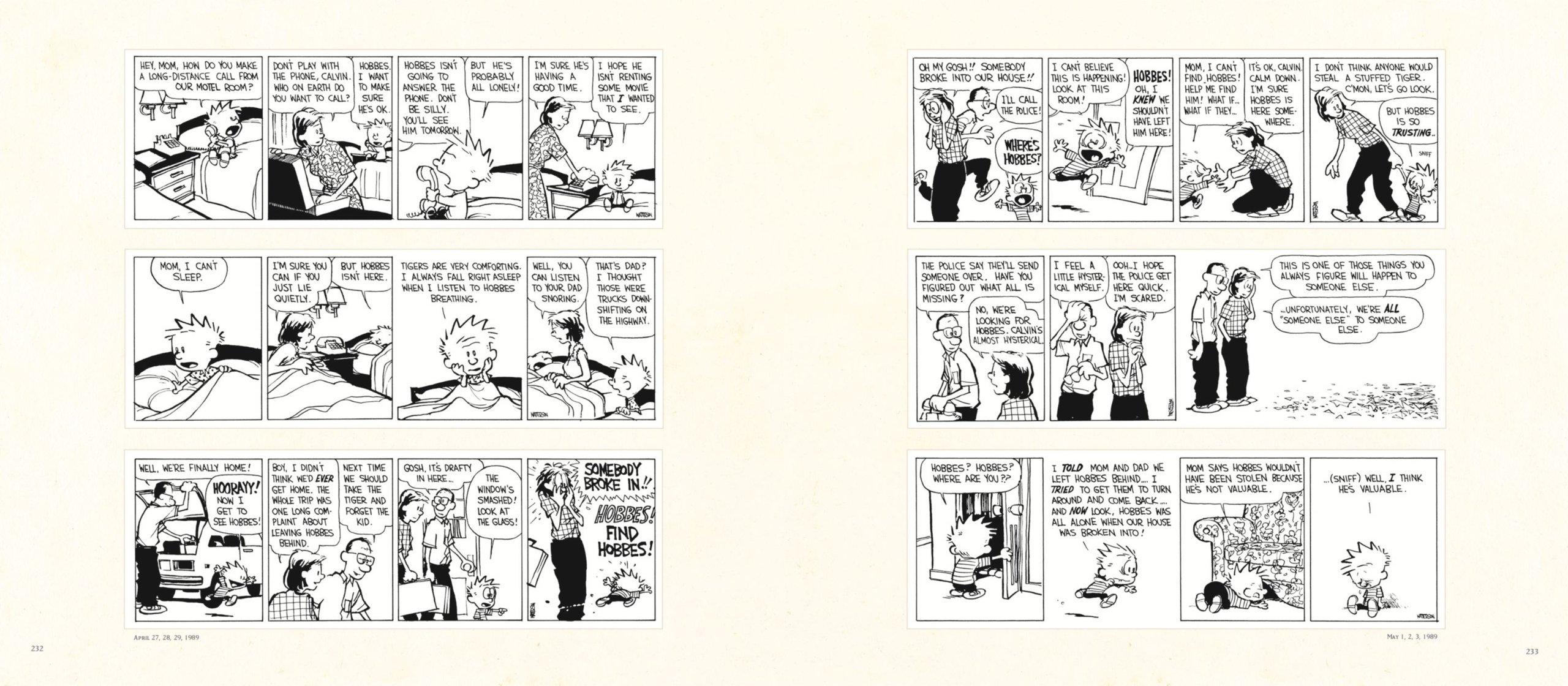 Calvin and Hobbesis unquestionably one of the most popular comic strips of all time. The imaginative world of a boy and his real-only-to-him tiger was first syndicated in 1985 and appeared in more than 2,400 newspapers when Bill Watterson retired on January 1, 1996. The entire body of Calvin and Hobbescartoons was originally published in hardcover as a truly noteworthy tribute to this singular cartoon in The Complete Calvin and Hobbes. Available for the first time in paperback, these four full-colour volumes in a sturdy slipcase include all the Calvin and Hobbescartoons that ever appeared in syndication. This is the treasure that all Calvin and Hobbesfans seek.