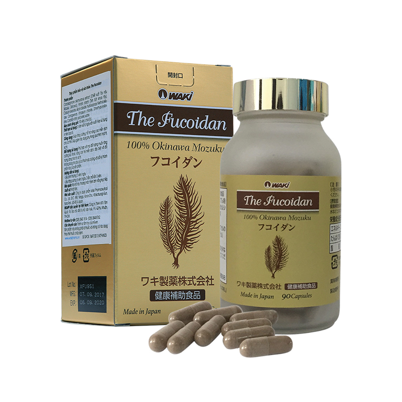- The Fucoidan - 100% Chiết Xuất Tảo Nâu Okinawa Nhật Bản Waki (90 Viên / Chai) của công ty Dược phẩm Waki Pharma – Nhật Bản được chiết xuất 100% từ tảo nâu Okinawa – chứa hàm lượng hoạt chất fucoidan rất cao, giúp mang lại nhiều lợi ích sức khỏe, đặc biệt trong trong hỗ trợ điều trị ung thư được Viện Nghiên Cứu Fucoidan Nhật Bản NPO công bố.