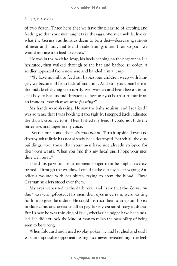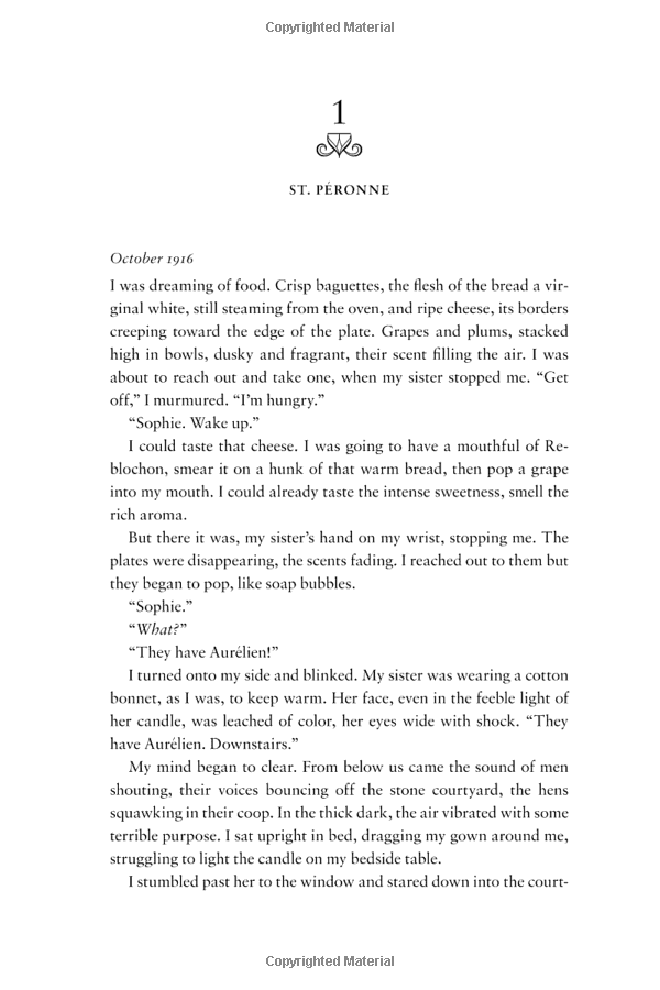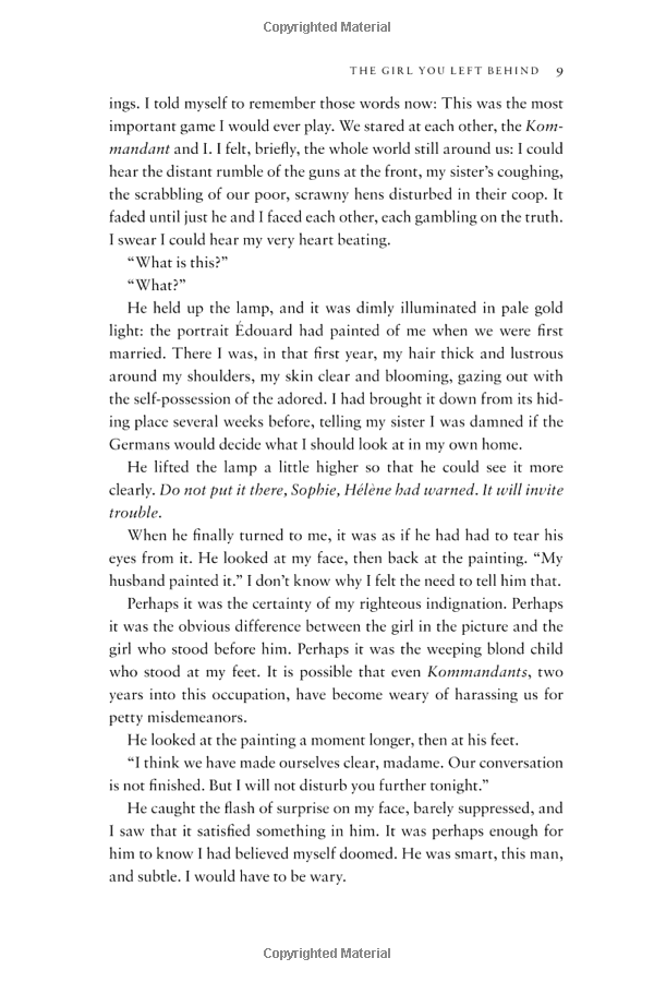 France, 1916. Sophie Lefevre must keep her family safe whilst her adored husband Edouard fights at the front. When she is ordered to serve the German officers who descend on her hotel each evening, her home becomes riven by fierce tensions. And from the moment the new Kommandant sets eyes on Sophie's portrait - painted by Edouard - a dangerous obsession is born, which will lead Sophie to make a dark and terrible decision.