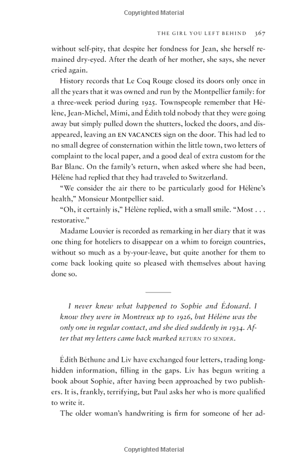 In The Girl You Left Behind two young women, separated by a century, are united in their determination to fight for what they love most - whatever the cost.