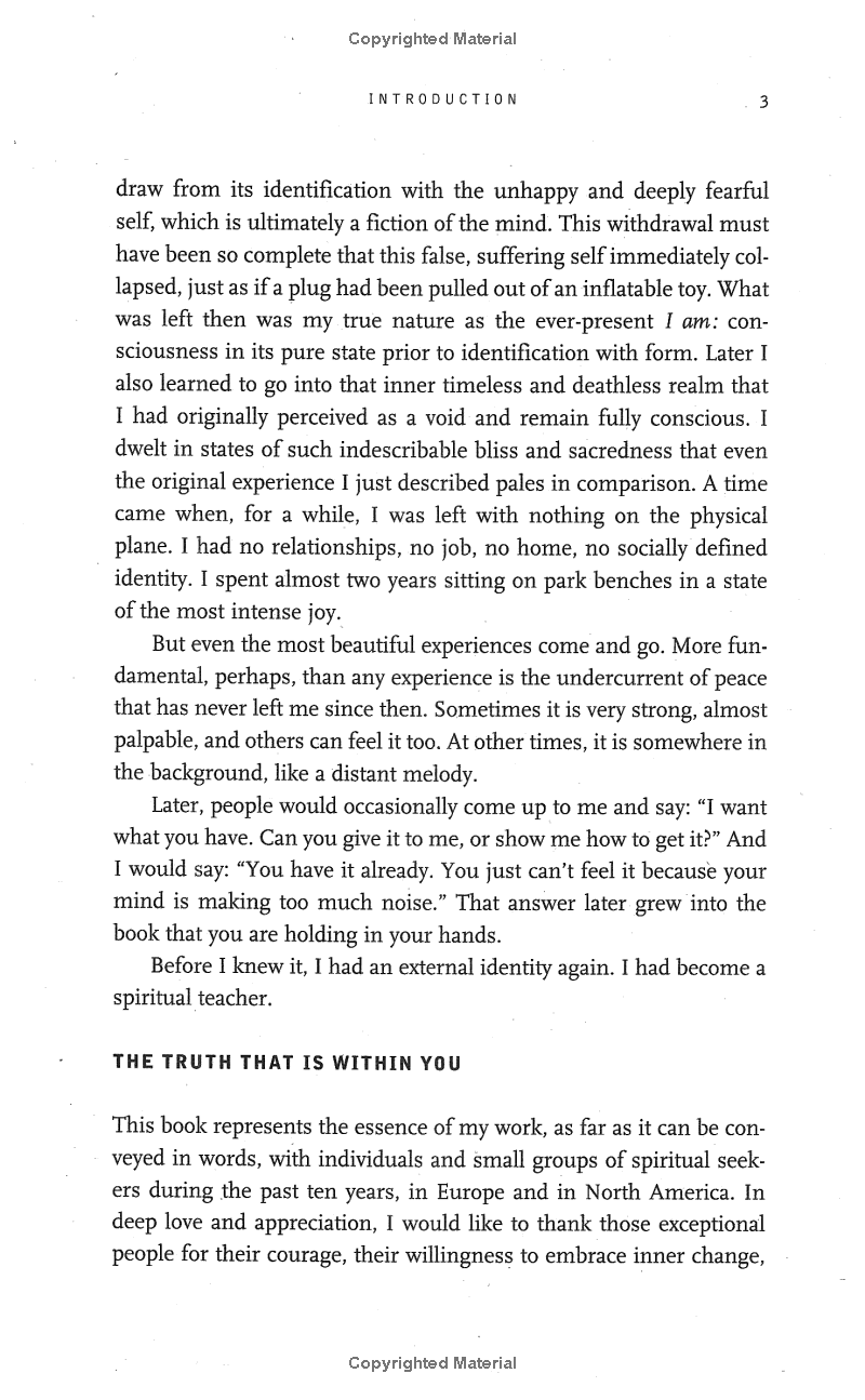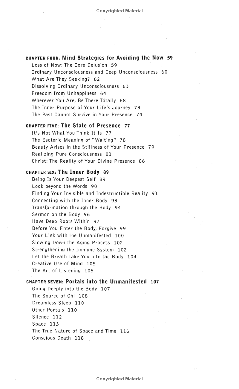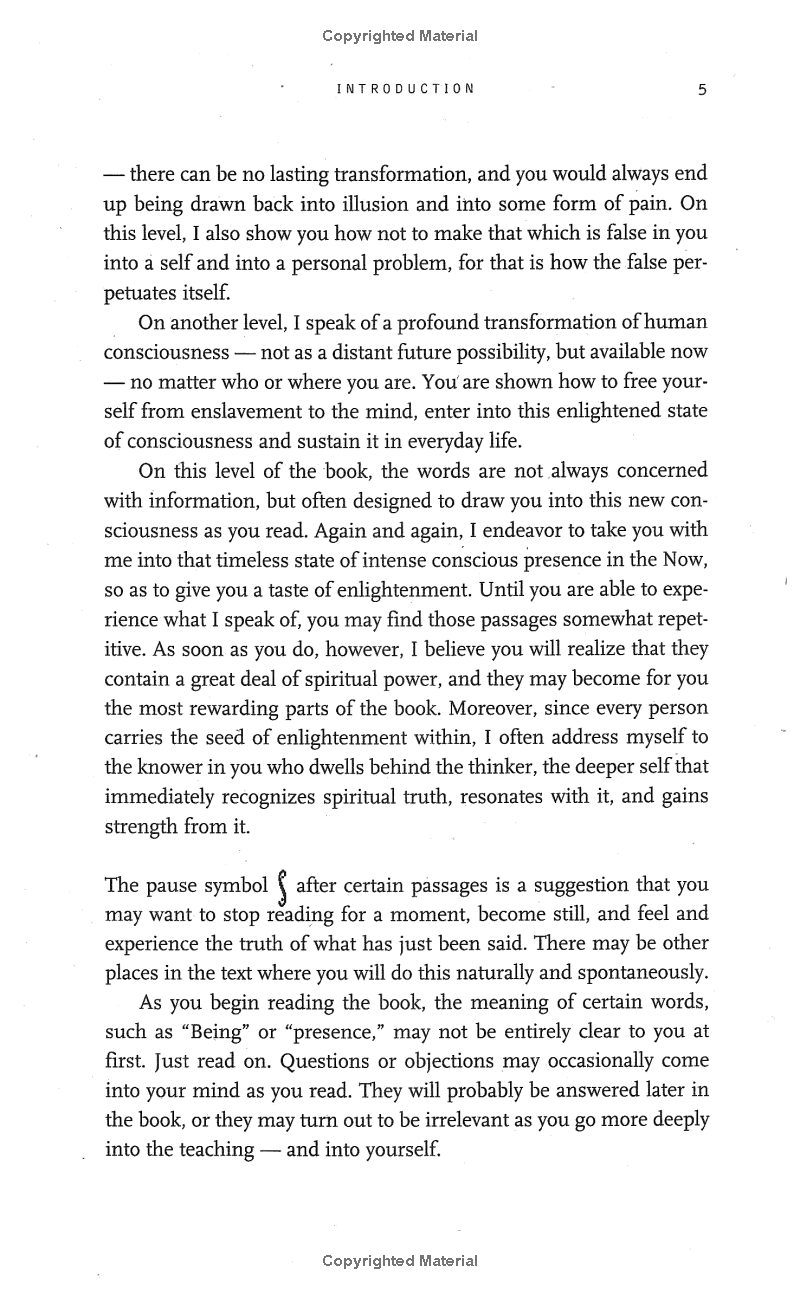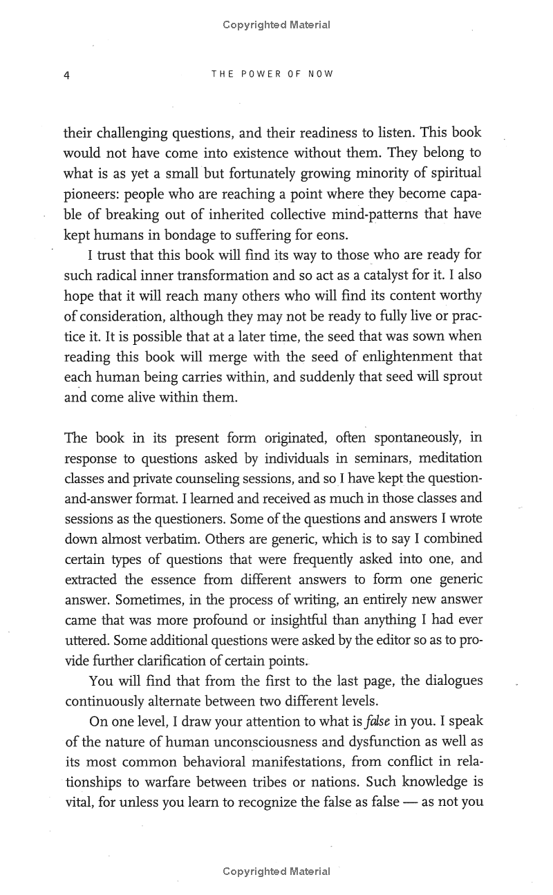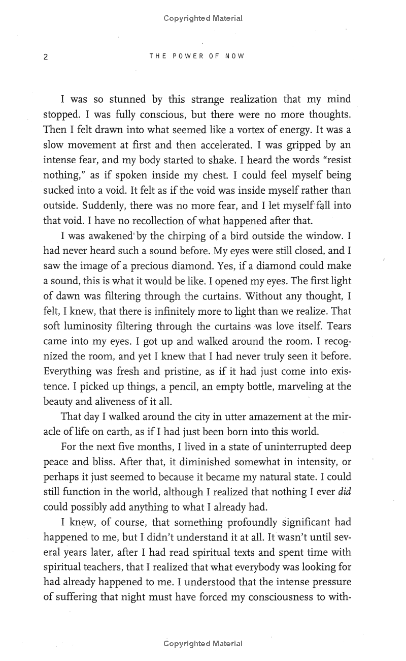 To make the journey into The Power of Now we will need to leave our analytical mind and its false created self, the ego, behind. Although the journey is challenging, Eckhart Tolle offers simple language and a question and answer format to show us how to silence our thoughts and create a liberated life.