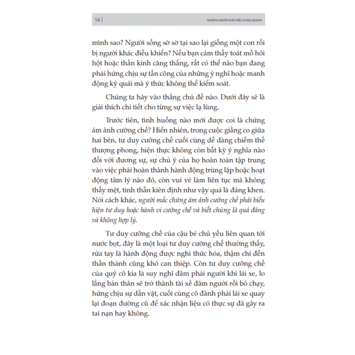 Thật ra đa phần chúng ta đều từng có trải nghiệm "khác người", ví dụ: ám ảnh cưỡng chế, hung hăng, biếng ăn tâm thần, nghiện rượu. Nhưng con người có cơ chế xa lánh những điều liên quan tới "khác người", cho rằng đó là sự lập dị và những người như vậy khó tránh khỏi việc bị cô lập, bài trừ.