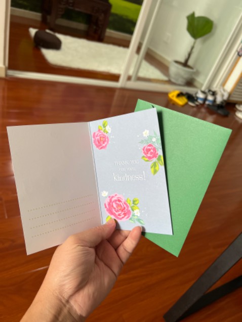 - Họa tiết trang trí trên thiệp bắt mắt, phong bì lịch sự để bạn đặt tấm thiệp vào bên trong khi gửi tặng, vừa tăng tính thẩm mỹ vừa thể hiện được sự trân trọng đối với người nhận.