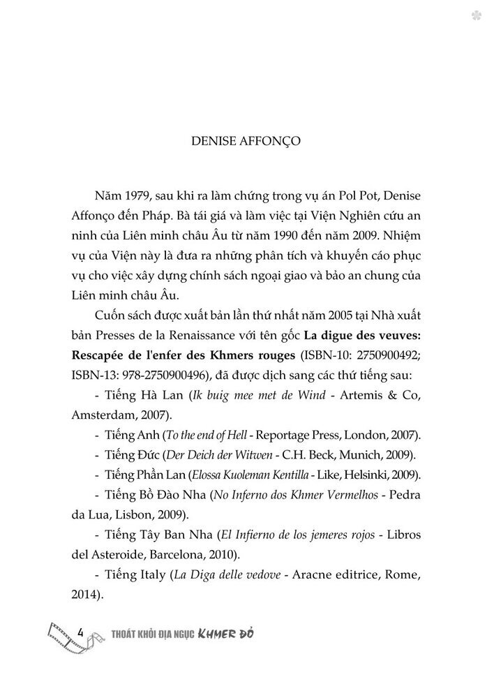Cuốn sách Thoát khỏi địa ngục Khơmer đỏ - Hồi ký của một người còn sống là cuốn hồi ký đẫm nước mắt viết về những tháng năm kiệt quệ cả về thể xác lẫn tinh thần mà Denise Affonco đã phải trải qua.